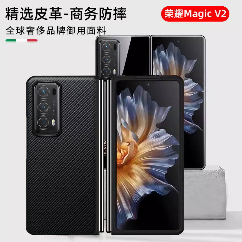 碳纖維紋理榮耀magicV2手機殼商務皮革防摔honor v2保護殼適用于magicvs折疊屏保護套輕奢vs至臻版男女款輕薄