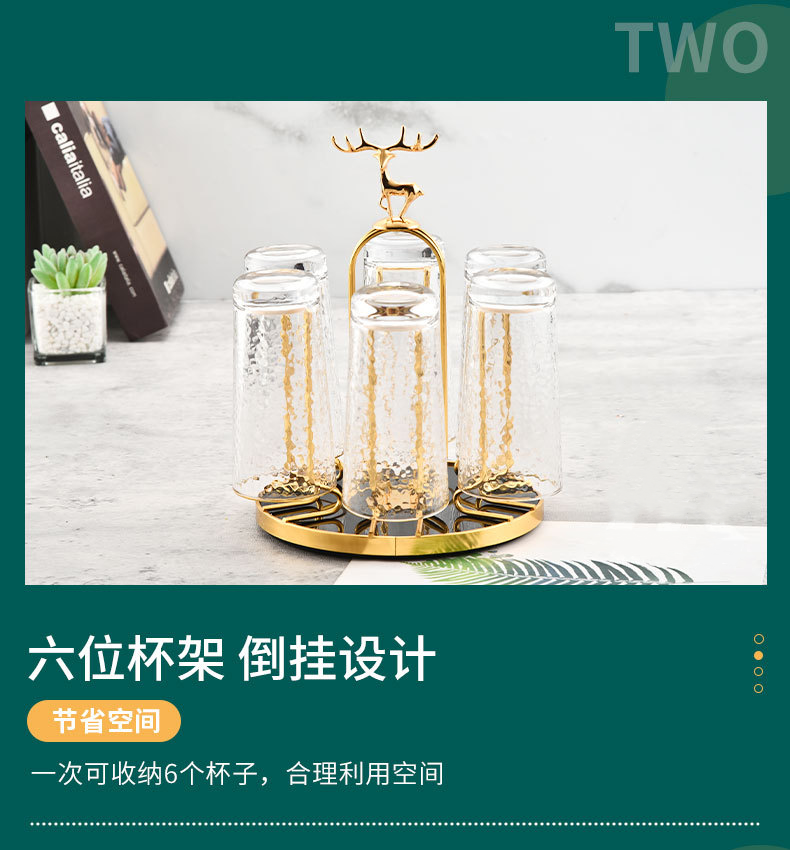 輕奢小鹿金色玻璃杯掛架套裝杯架