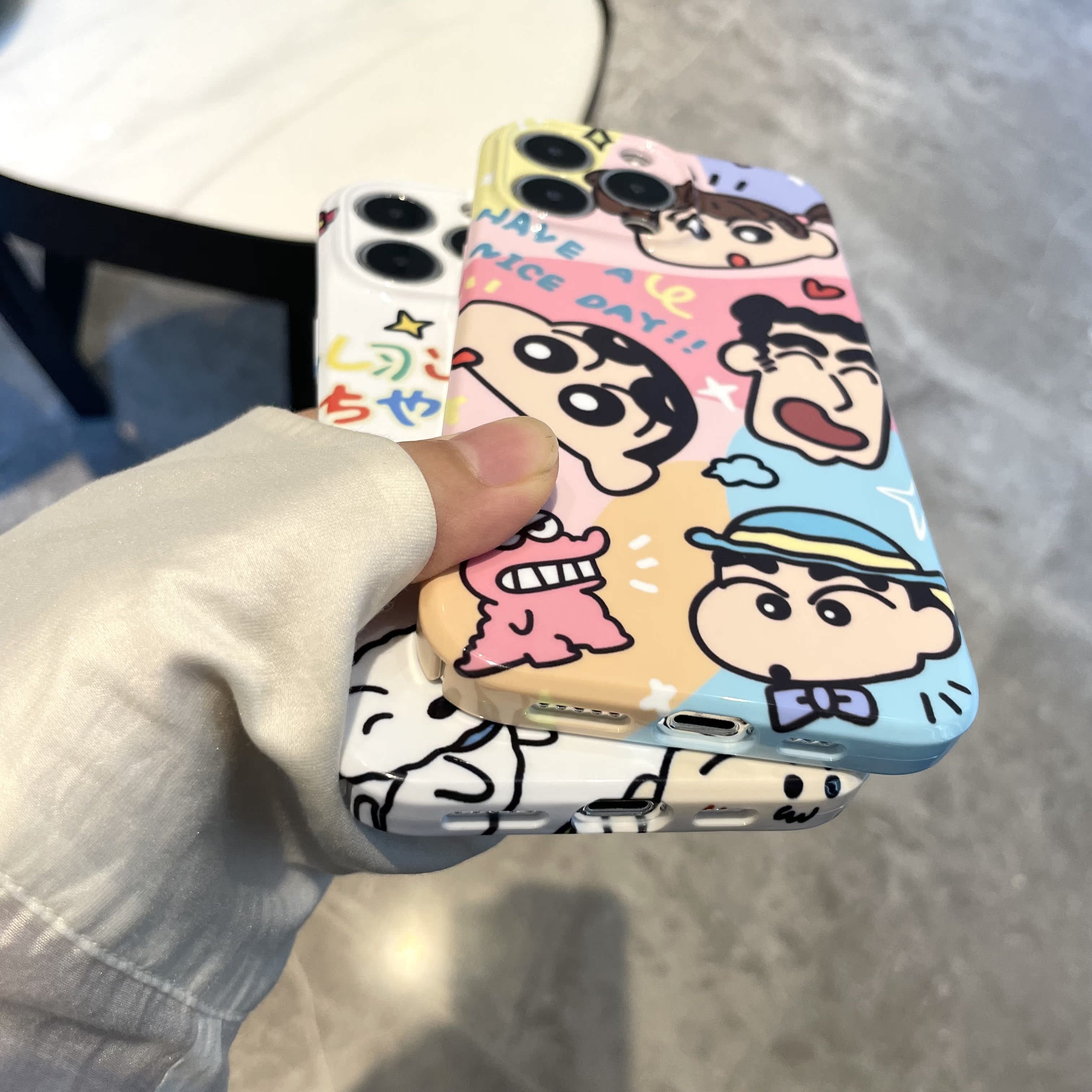 彩虹蠟筆小新適用iPhone13pro/14pro手機殼蘋果14plus全包硬殼12proMax/11/XR/XS磨砂卡通7/8plus輕薄男女款X