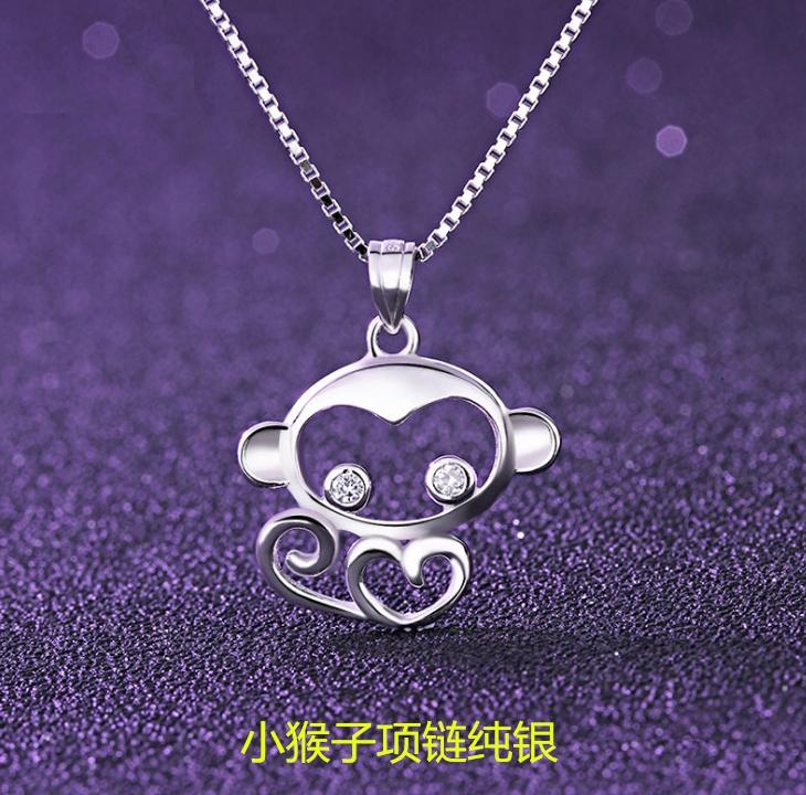 簡約925純銀小猴子吊墜ins鎖骨鏈