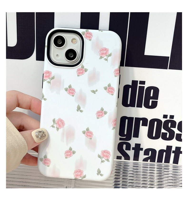 韓風小清新粉色玫瑰適用蘋果14手機殼iPhone13ProMax新款12防摔13pro女款11硅膠14pro文藝小眾網紅全包軟殼套