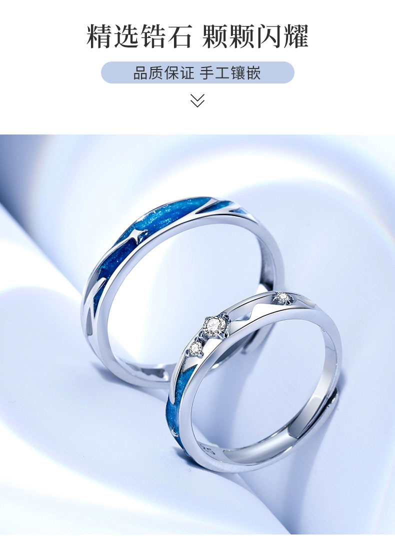 流星雨S999純銀情侶戒指男女一對情侶款對戒小眾設計刻字紀念禮物