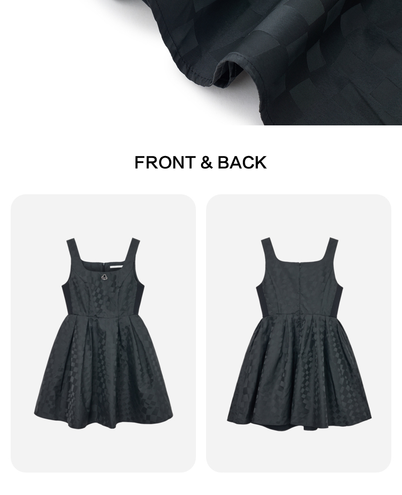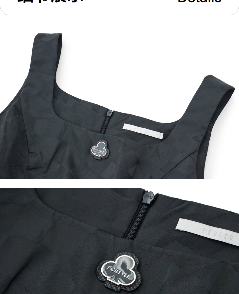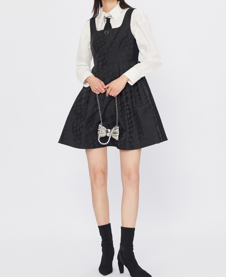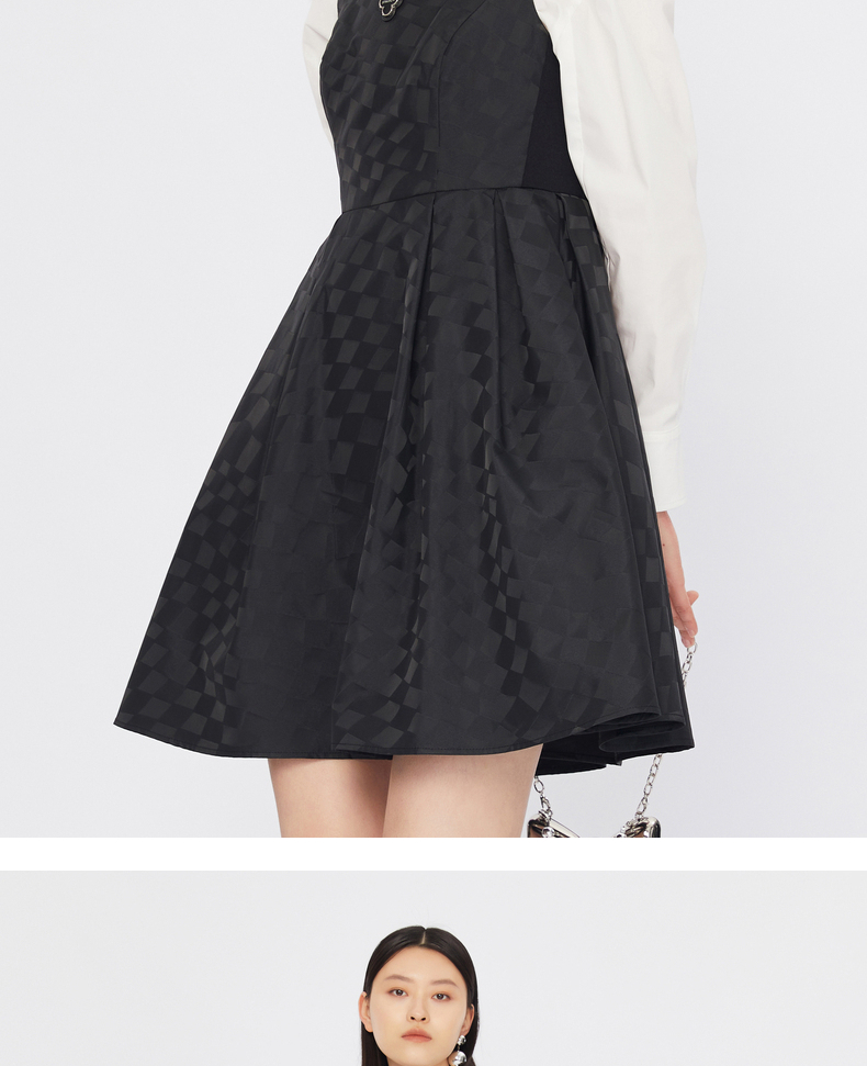 飄蕾格紋提花連衣裙女2023秋季新款甜美收腰微褶無袖蓬蓬背帶裙