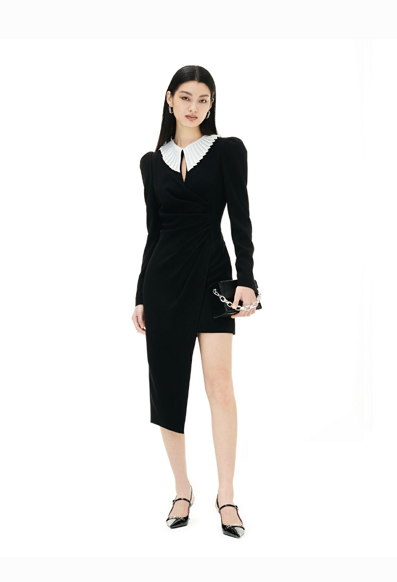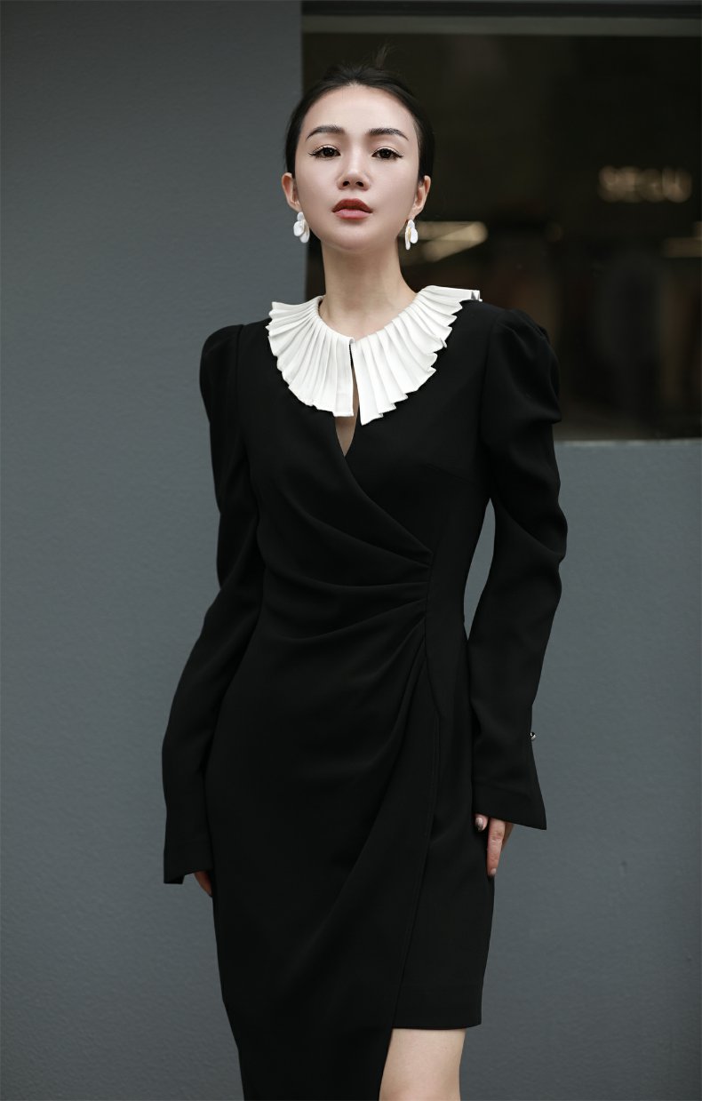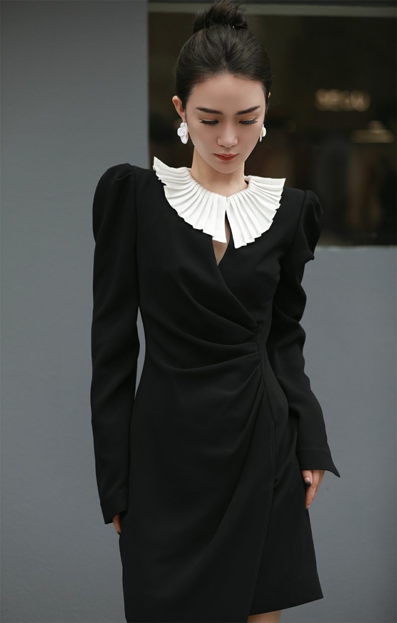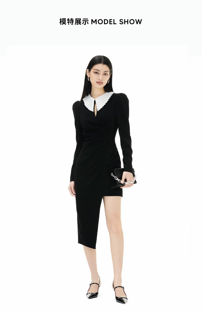 YES BY YESIR葉謙原創設計師2023秋冬新款新中式不對稱風琴連衣裙