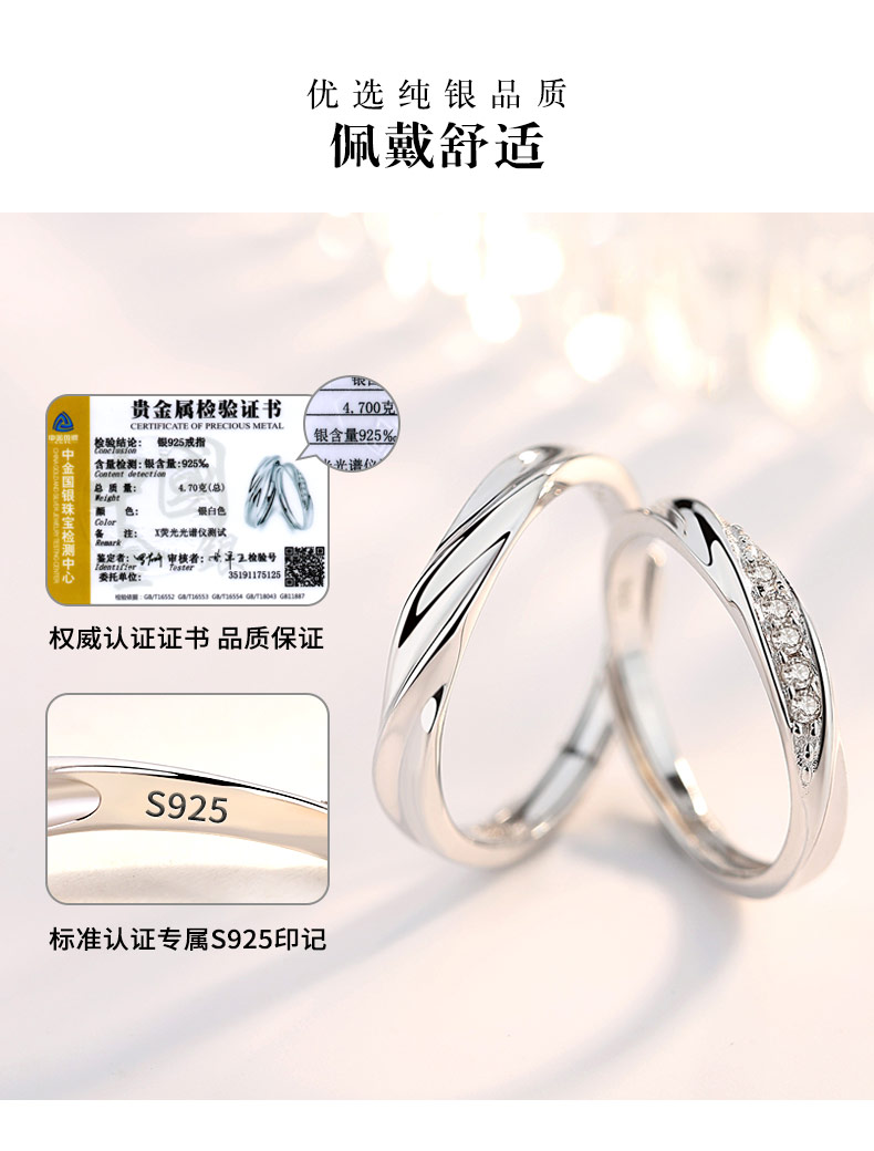 999純銀戒指情侶對戒一對素圈小眾設計刻字生日禮物送女友男友
