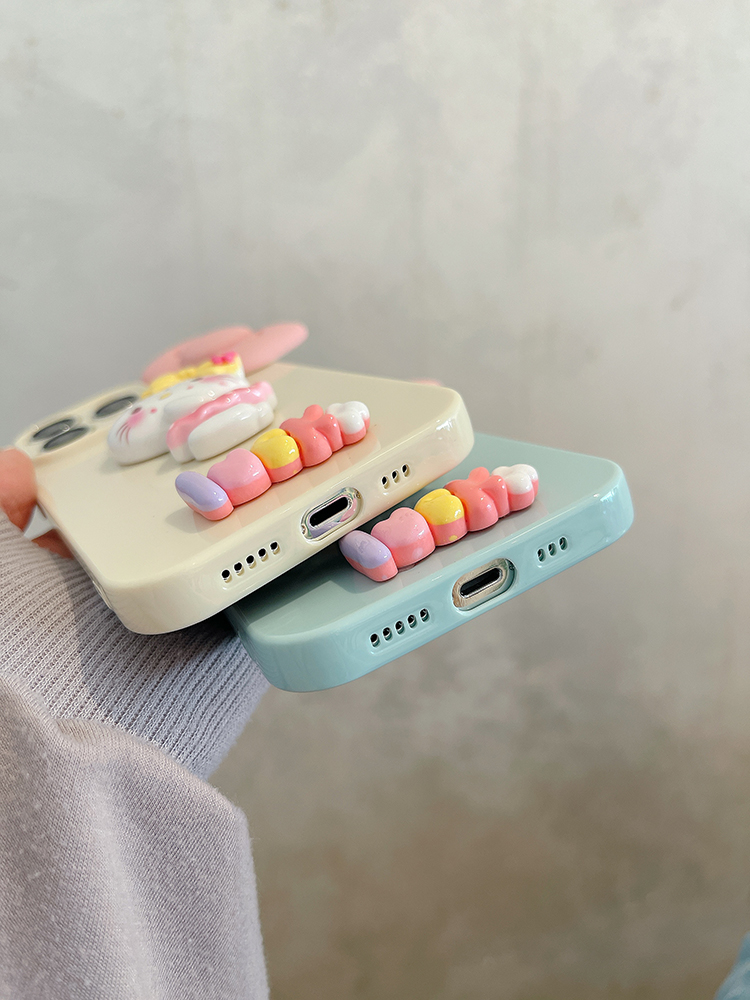 立體少女粉色兔子蝴蝶結適用蘋果14手機殼iPhone13ProMax新款14Pro女款12防摔套11硅膠13Pro創意小眾全包軟殼