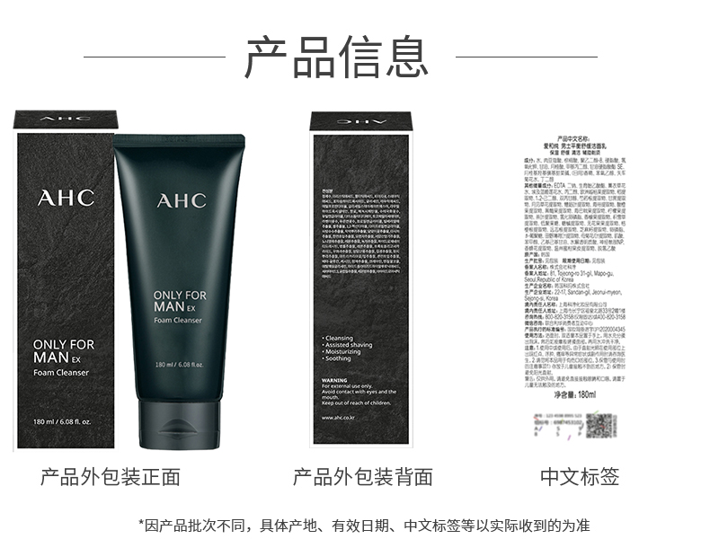 【搶先加購】AHC官方旗艦店男士洗面奶溫和清潔保濕舒緩潔面180ml