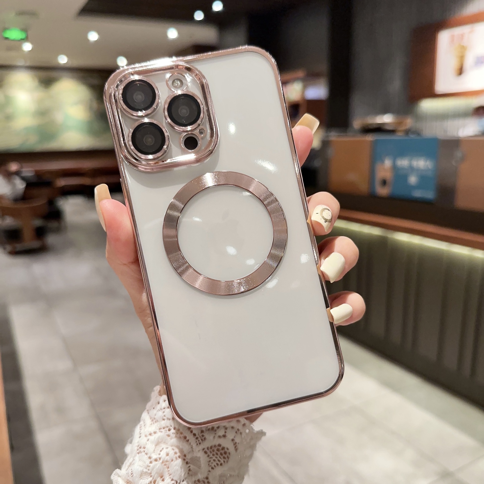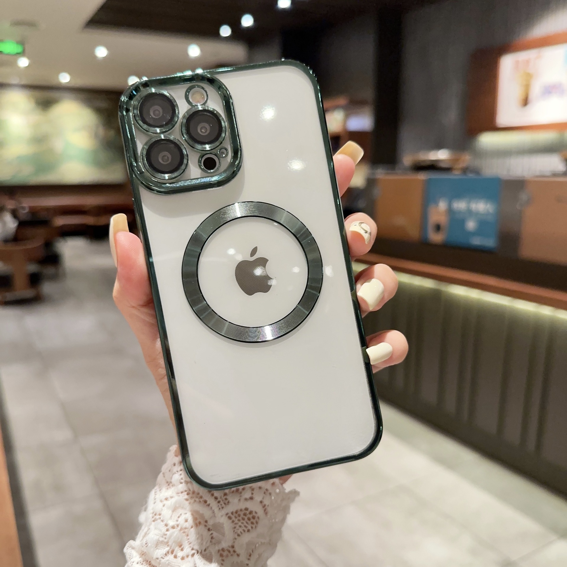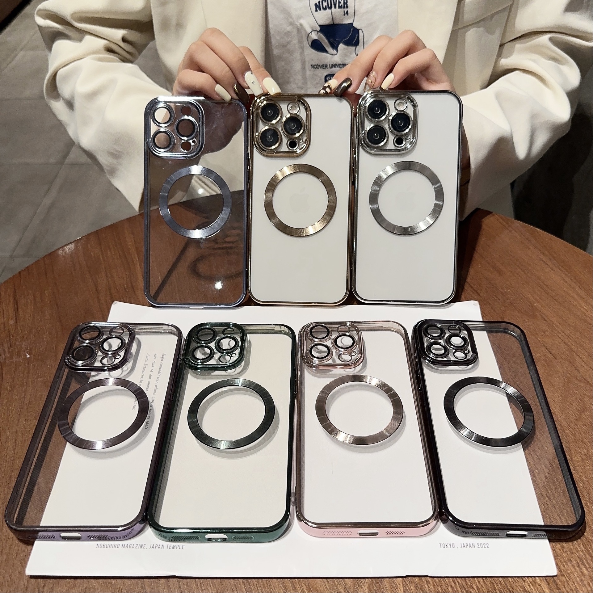 小眾適用14promax電鍍磁吸式無線充電蘋果手機殼高級感iphone13/11/12手機殼自帶鏡頭膜MagSafe軟保護殼