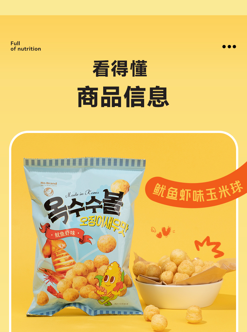 No Brand諾倍得魷魚蝦味玉米球66g韓國進口網紅零食
