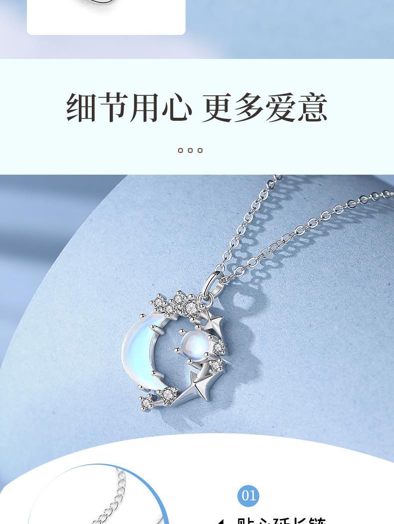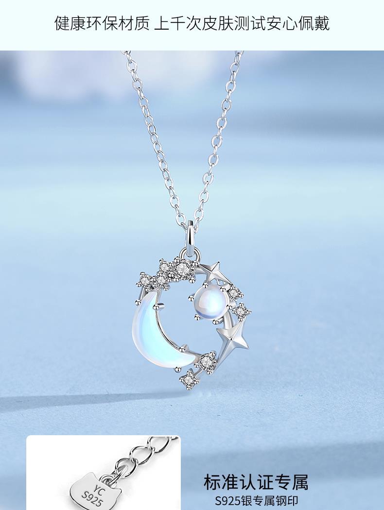 銀千惠琉璃石系列夢幻星月925銀項鏈女款星月小眾設計感甜美溫柔