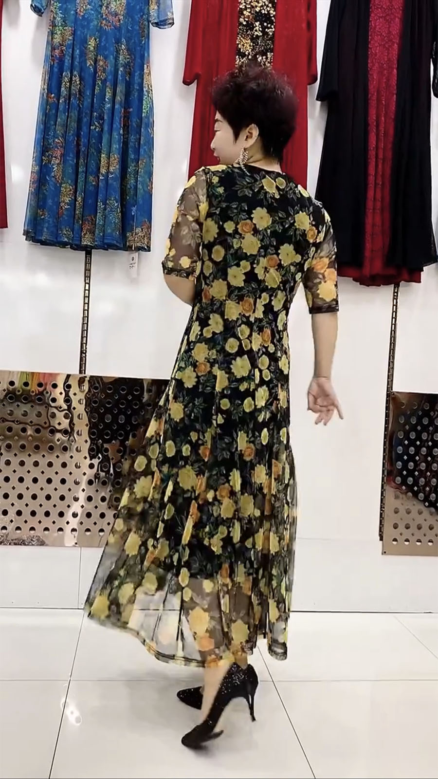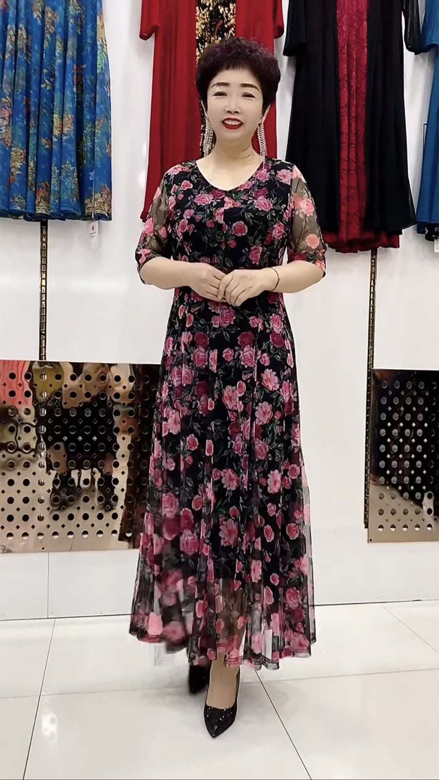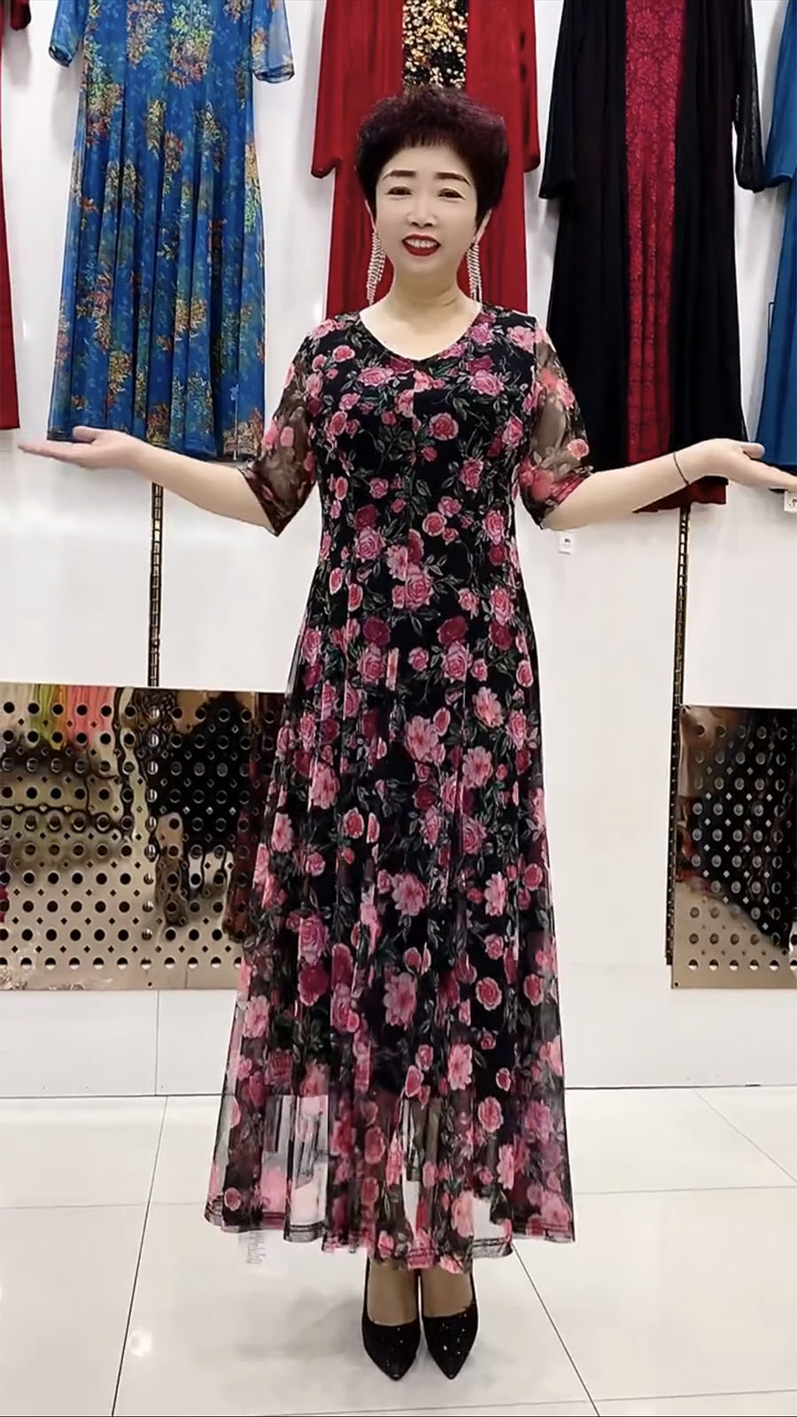 闊太太時尚百搭網紗媽媽裝連衣裙
