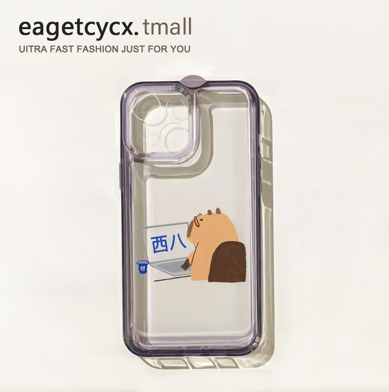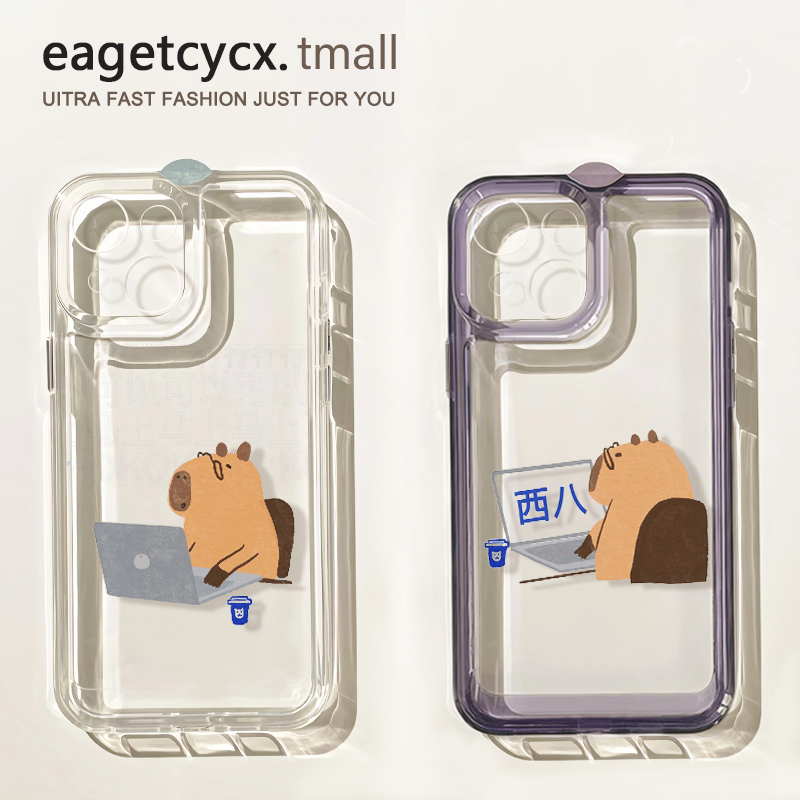 小眾水豚插畫適用蘋果14promax手機殼iPhone13透明12亞克力新款11pro不發黃1plus5可愛xs少女xr全包x防摔硬殼