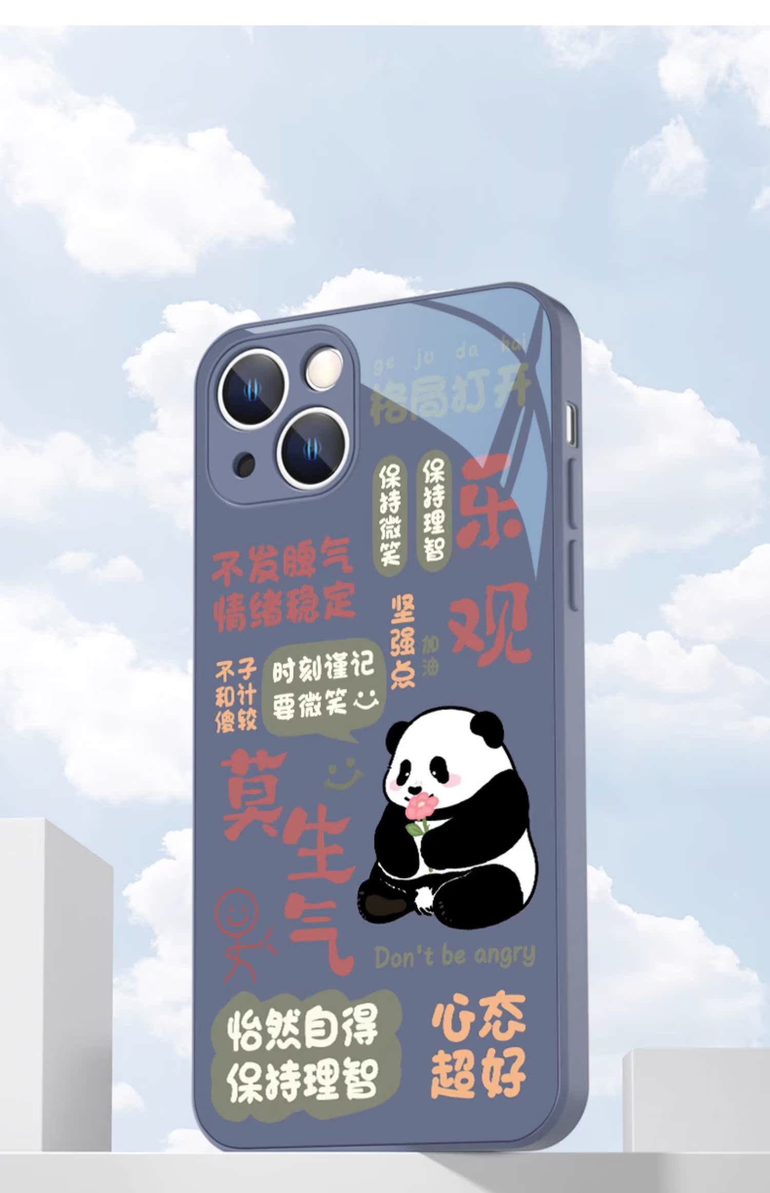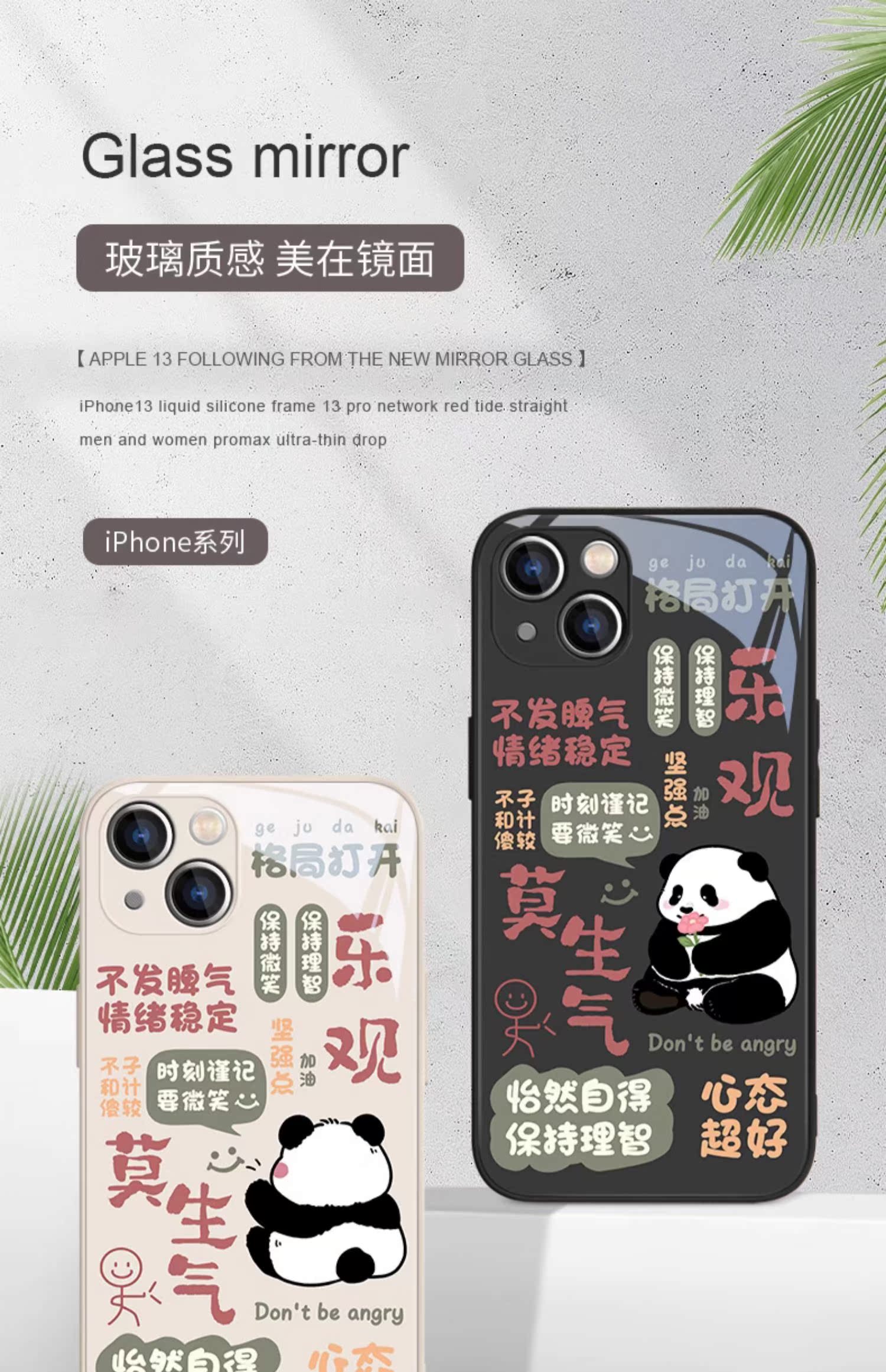 適用蘋果14pro情侶手機殼iPhone13熊貓15花花12promax新款11創意xsmax文字個性xr莫生氣x小眾13mini玻璃6可愛