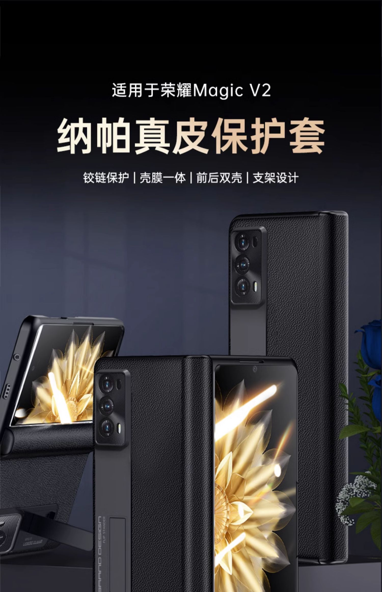 榮耀MagicV2手機殼新款真皮華為榮耀magicv2至臻版折疊屏保護套magicvs素皮網紅防摔高級感V全包殼膜一體外殼