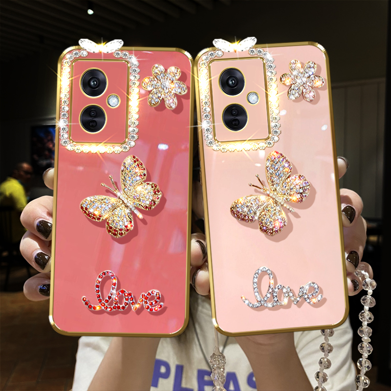 適用OPPO K11手機殼5G閃鑲鉆Pro彩色k11x蝴蝶oppok11x精孔鏡頭全包邊掛繩鏈子女款軟防摔保護套時尚奢華網紅