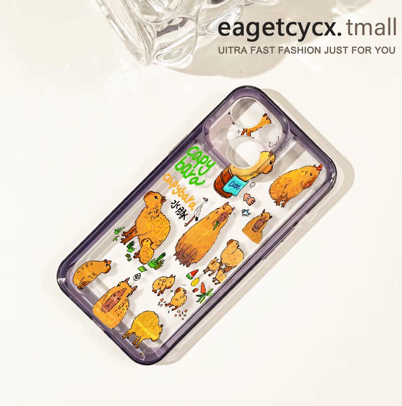插畫水豚爆款適用蘋果14promax手機殼iPhone13透明12亞克力新款11pro不發黃1plus5可愛xs少女xr全包x防摔硬殼