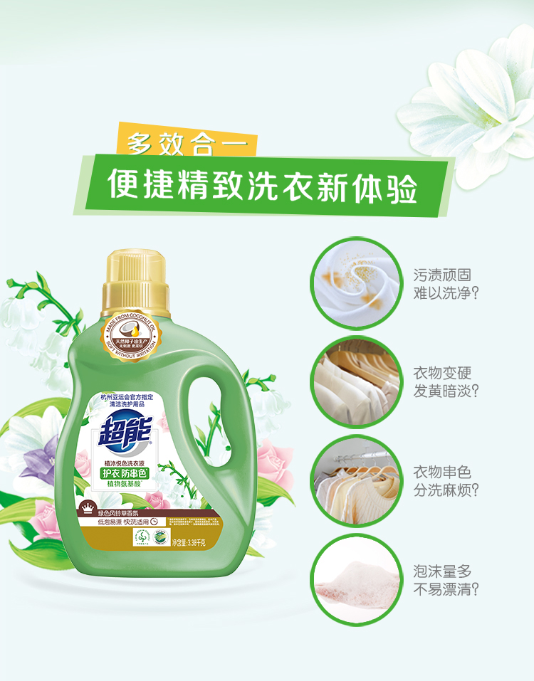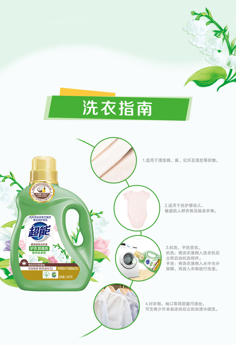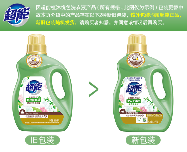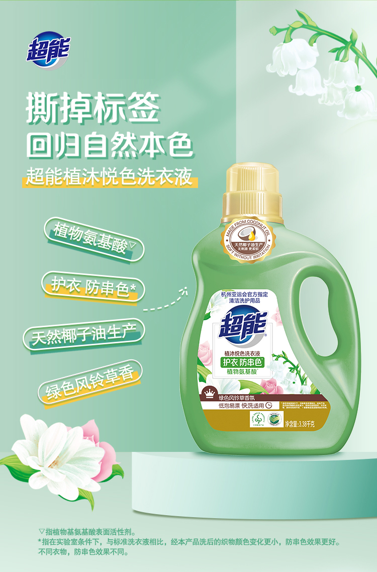 超能植沐悅色洗衣液3.38kg*4瓶27斤家用實惠裝持久留香正品整箱批
