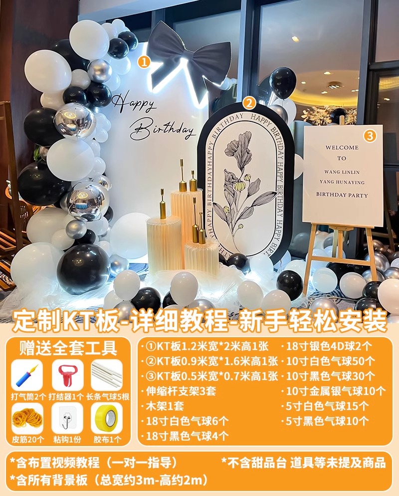 成人生日裝飾場景布置女孩氣球派對18歲網紅男孩高級感kt板背景墻