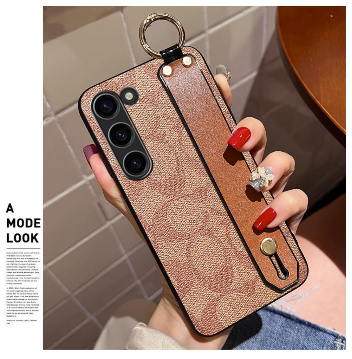 三星S23斜背手機殼s22ultra復古腕帶可支架S21ULTRA保護套皮外殼巴黎輕奢ins斜挎掛繩女note20夏天潮軟適用于