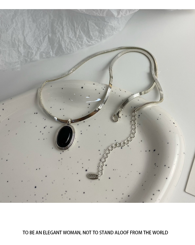 [Z小姐]黑瑪瑙925純銀項鏈輕奢小眾蛇骨鏈女高級感新款爆款吊墜