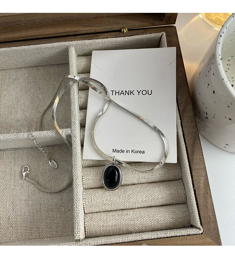 z小姐925純銀黑色圓牌吊墜鎖骨鏈