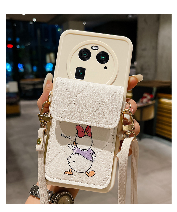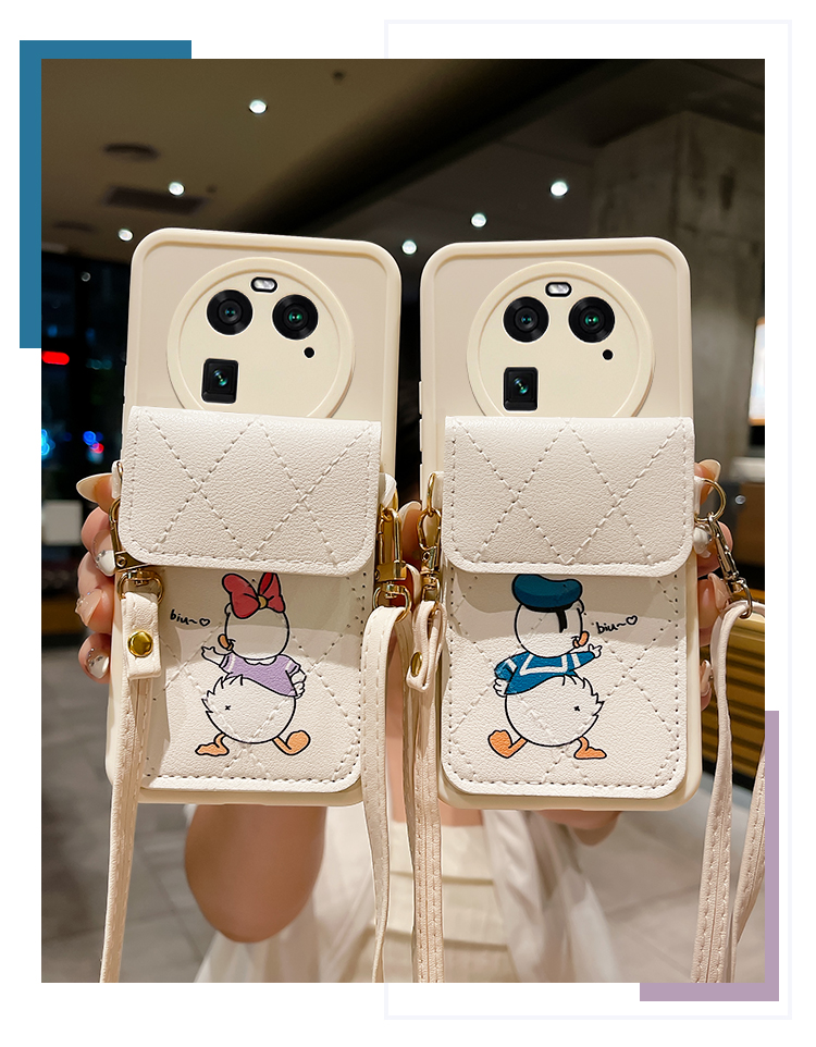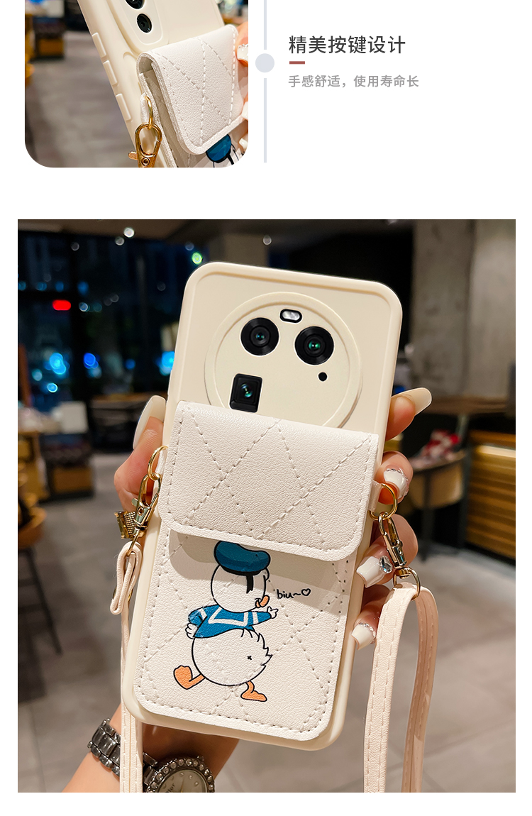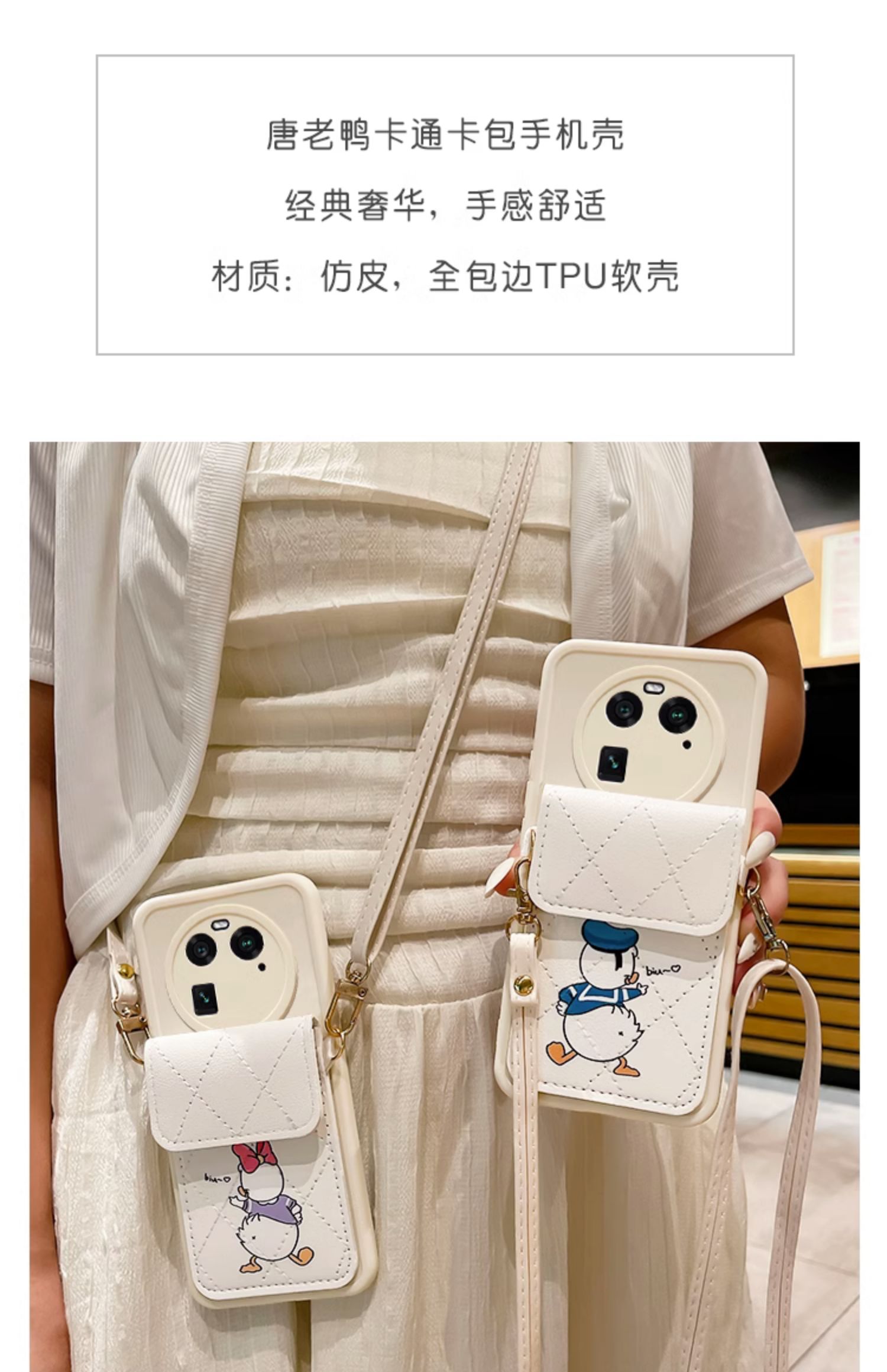 愛心唐老鴨零錢卡包適用OPPOfindx6手機殼OPPOfindx6Pro新款OPPOfind×6背帶斜跨掛繩Por卡通女款網紅防摔潮