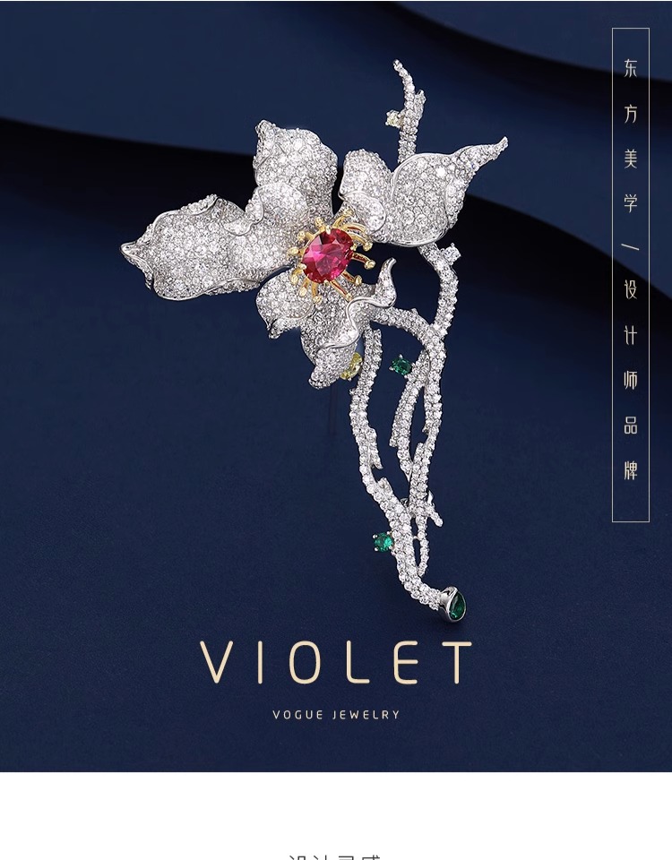 紫羅蘭寓花s925純銀高檔女精致胸針