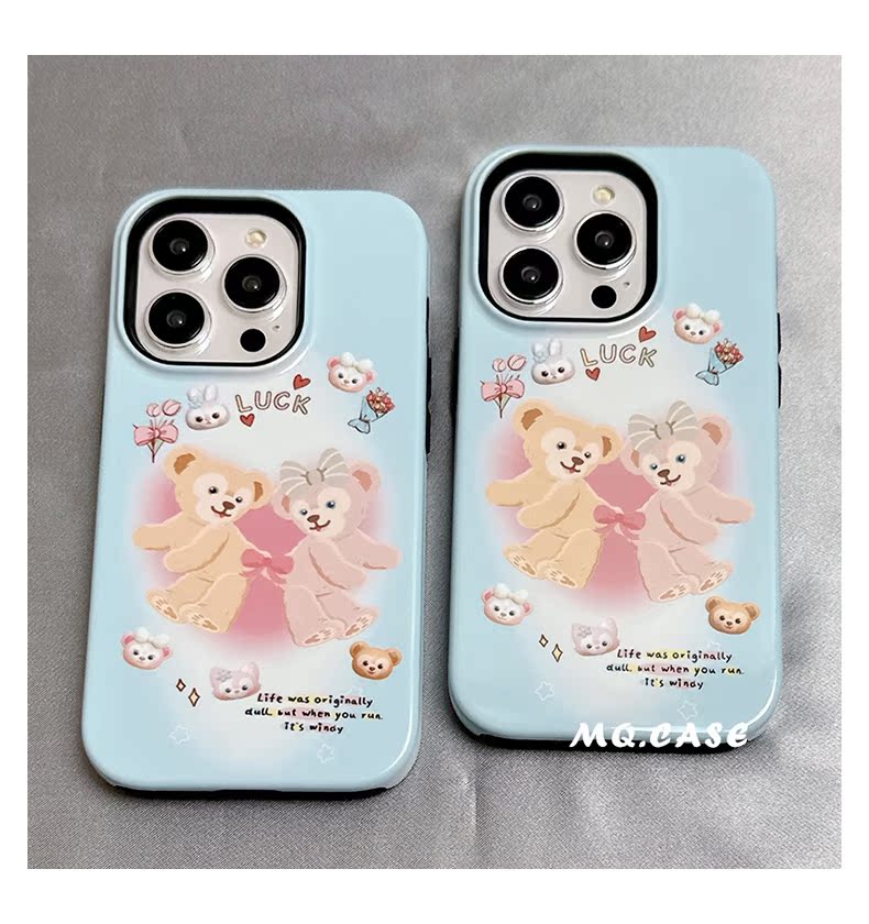 韓國可愛小熊卡通適用蘋果14手機殼高級感iPhone13Promax新款14Pro二合一菲林15套12創意11全包硅膠防摔女款
