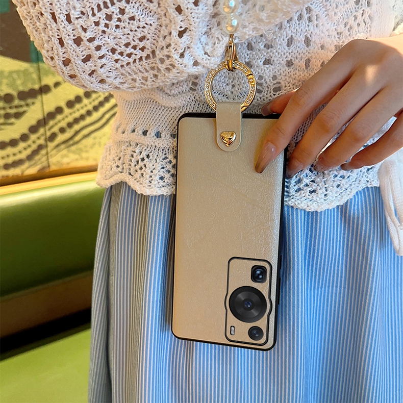 適用于華為p60手機殼閃鉆指環珍珠手鏈華為p60Pro新款蠶絲紋女款手機套版鏡頭全包防摔小眾高級感保護套