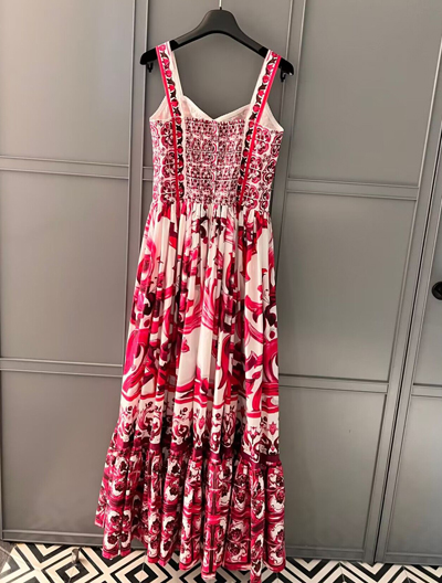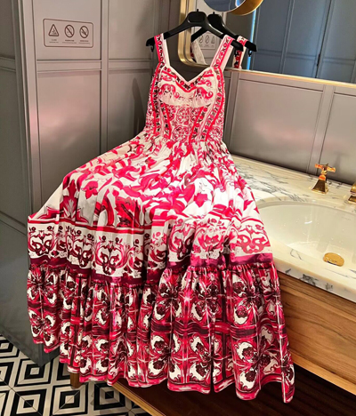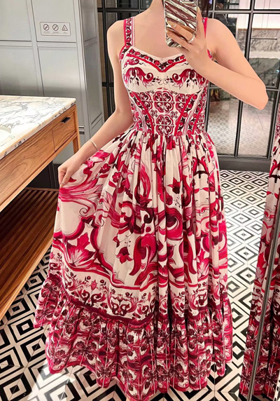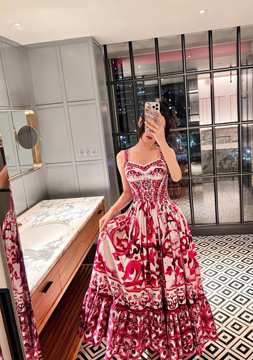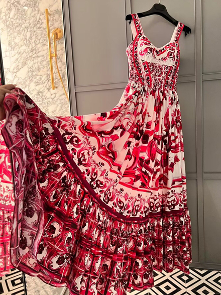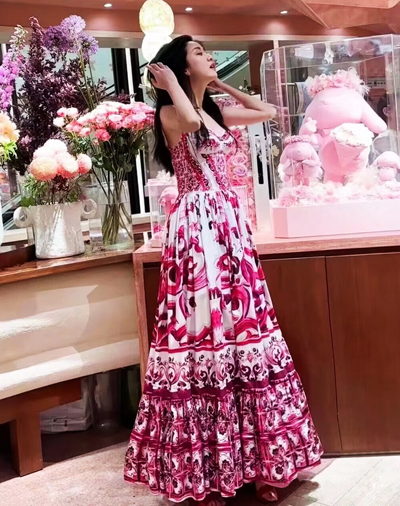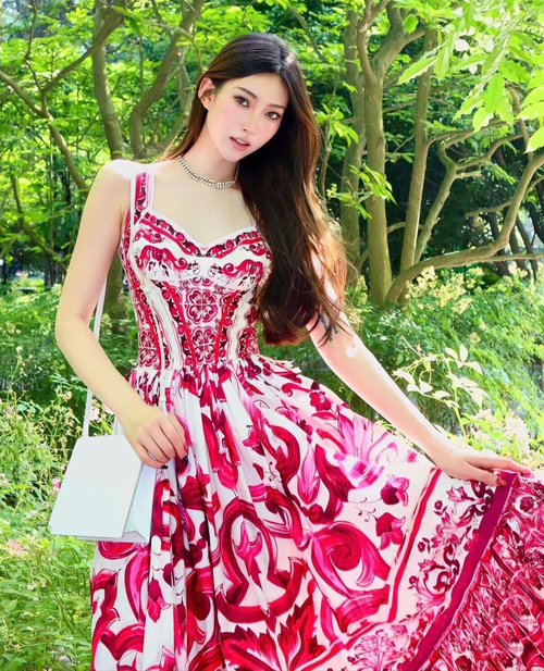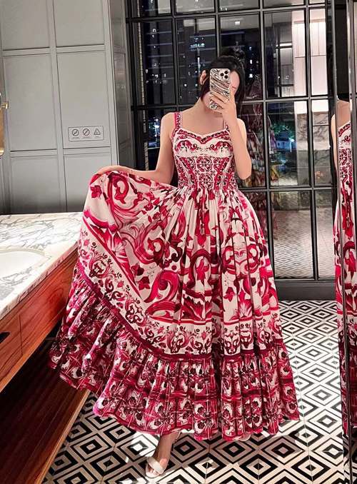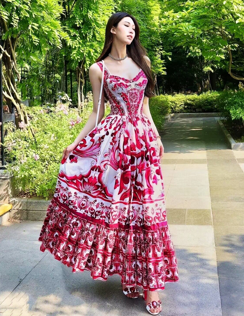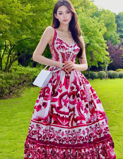 它的印花太美啦,這摸印花就想到海邊度假啦,美到看一眼就會心醉的 喜歡肩部復古俏皮蝴蝶結飄帶,女神氣質中又有著點俏皮的感,女神的長裙巨大大幅裙擺 隨風飄動裙擺,浪漫的度假裙,帶頂草帽,那是海邊的女神