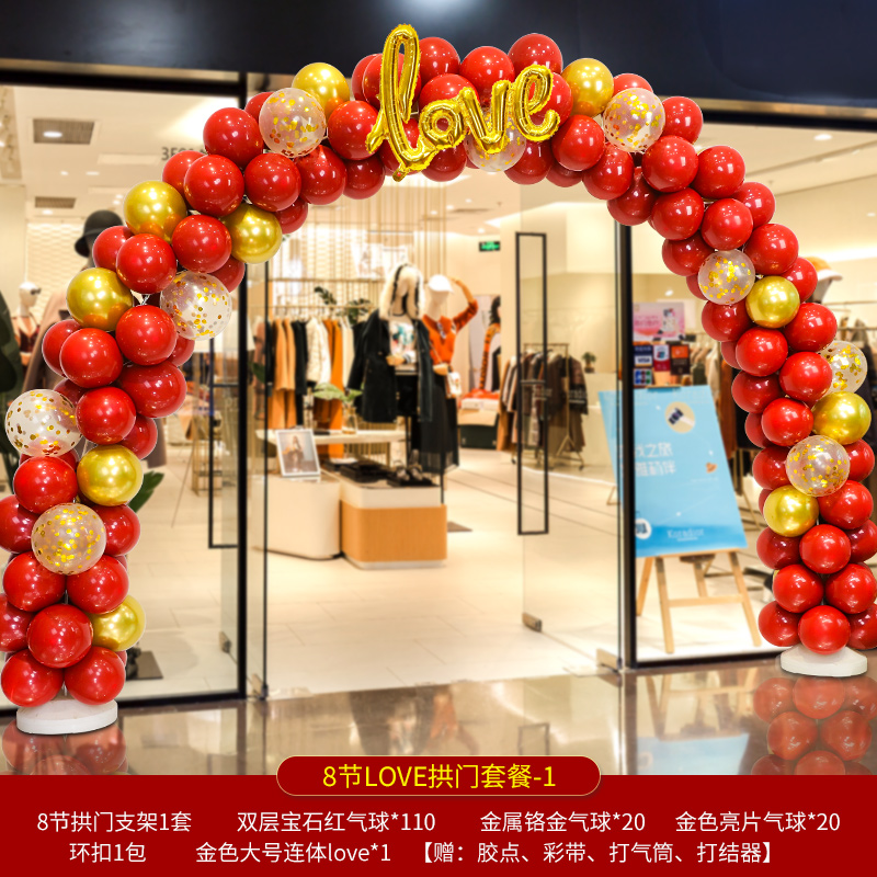 七夕情人節氣球拱門粉色玫紅立柱裝飾商場珠寶店浪漫氛圍場景布置