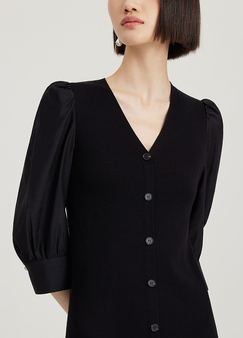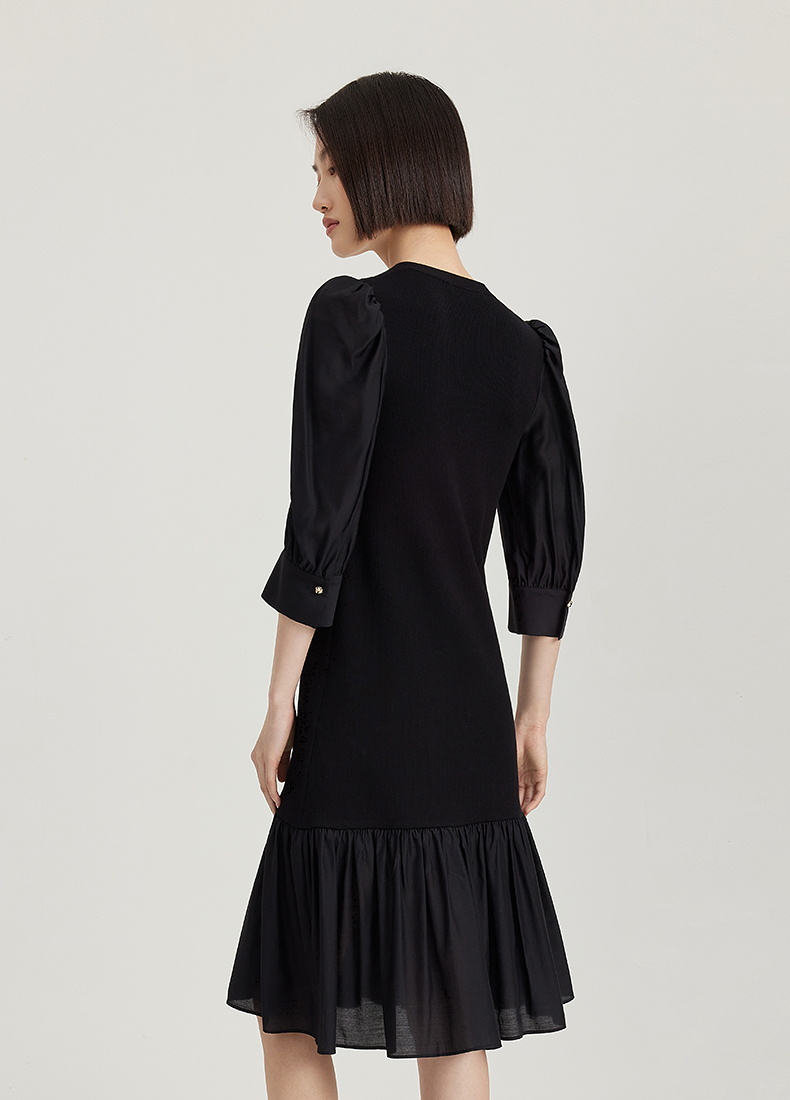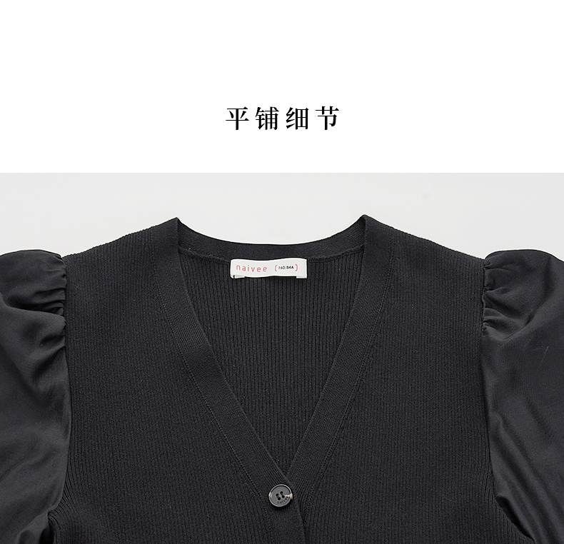 naivee納薇23秋新款自在赴約浪漫設計感V領泡泡袖拼接魚尾連衣裙