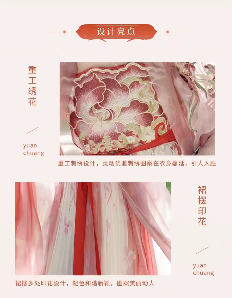 原創漢服女【花仙記】唐制重工刺繡訶子裙繡花大袖衫印花披帛唐裝