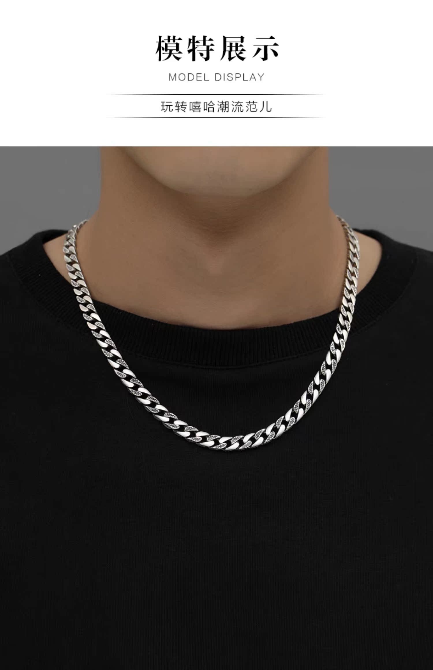 古巴男士925純銀潮ins嘻哈毛衣鏈