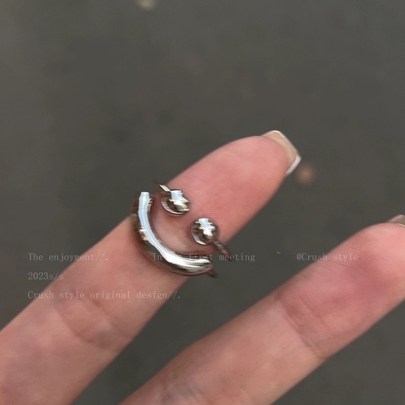 晴天笑臉簡約少女戒指開口可調節小眾設計百搭指環個性食指尾戒子
