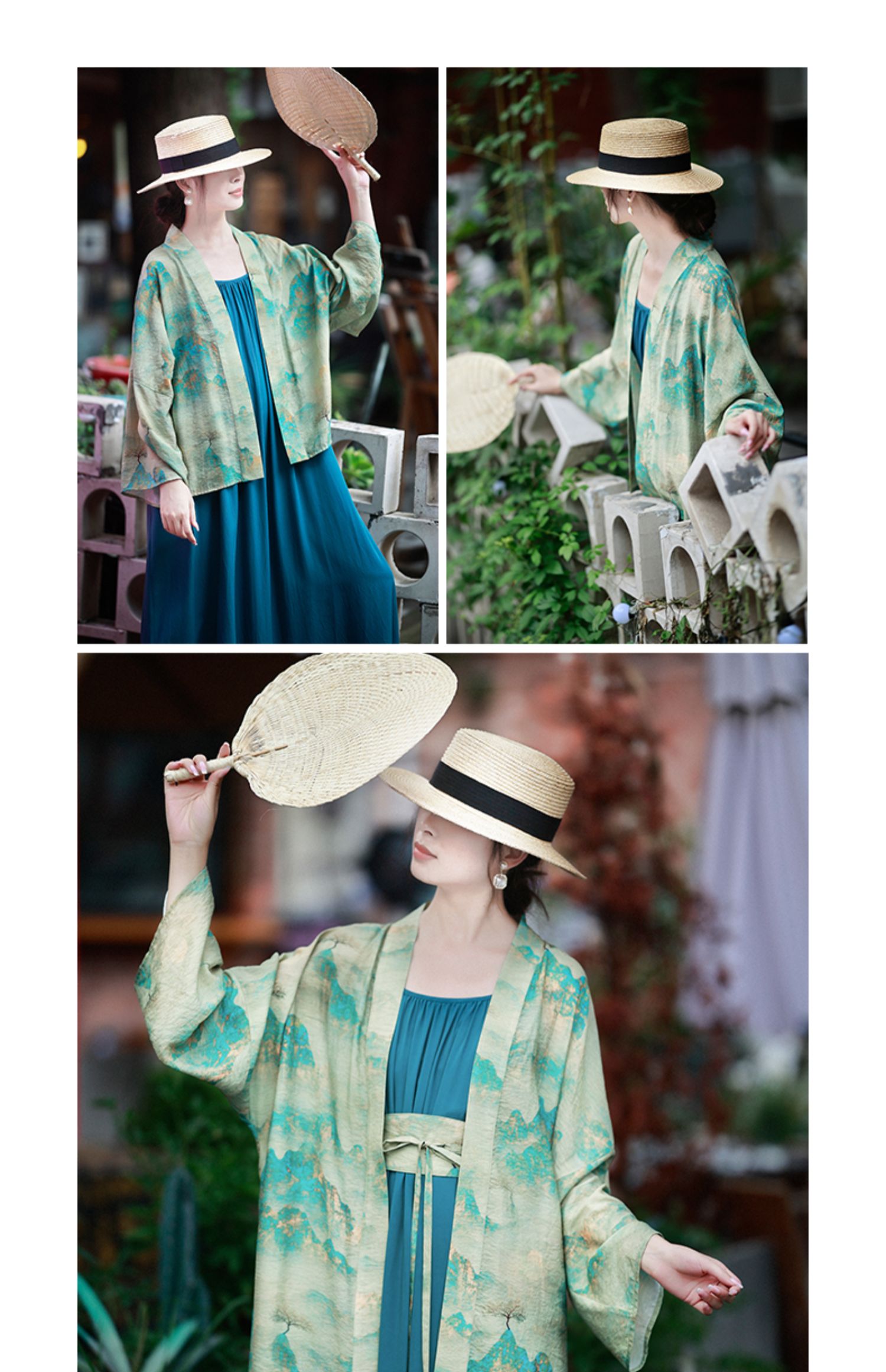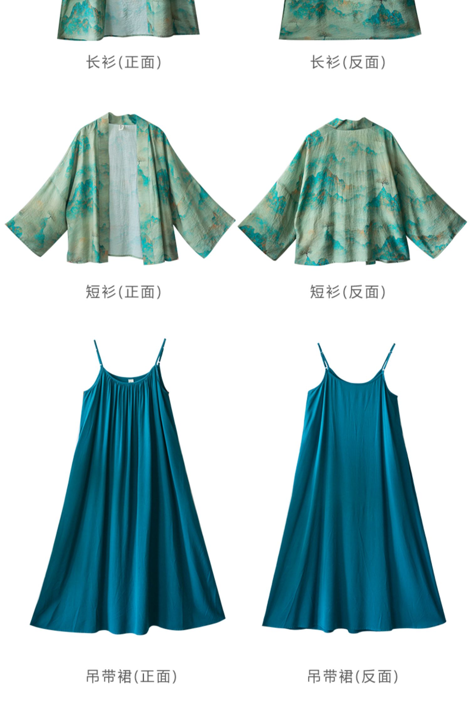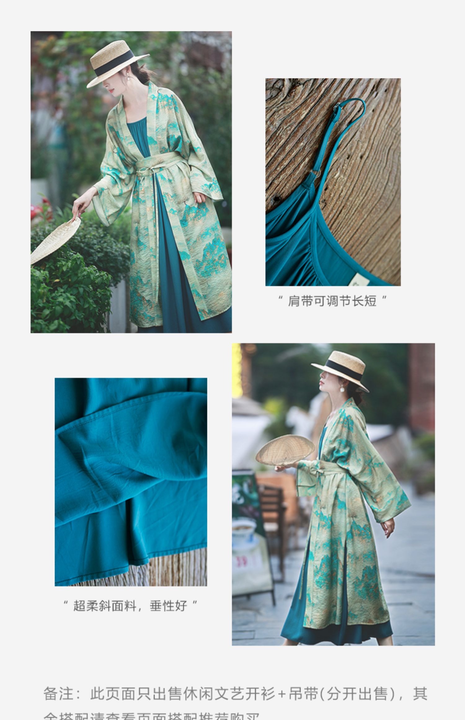 【山水成詩】原創設計改良漢服夏季中國風防曬開衫古風吊帶連衣裙