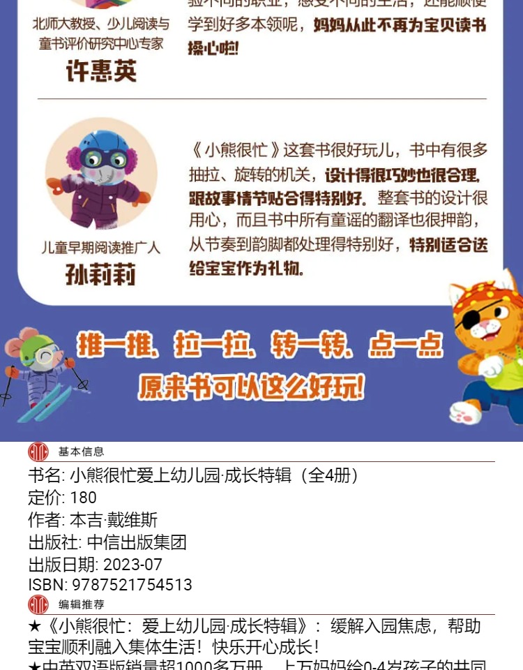 小熊很忙:愛上幼兒園·成長特輯(全4冊)本吉·戴維斯 著 寶寶入園準備機關書 緩解入園焦慮 和小熊一起 入園不用愁 中信