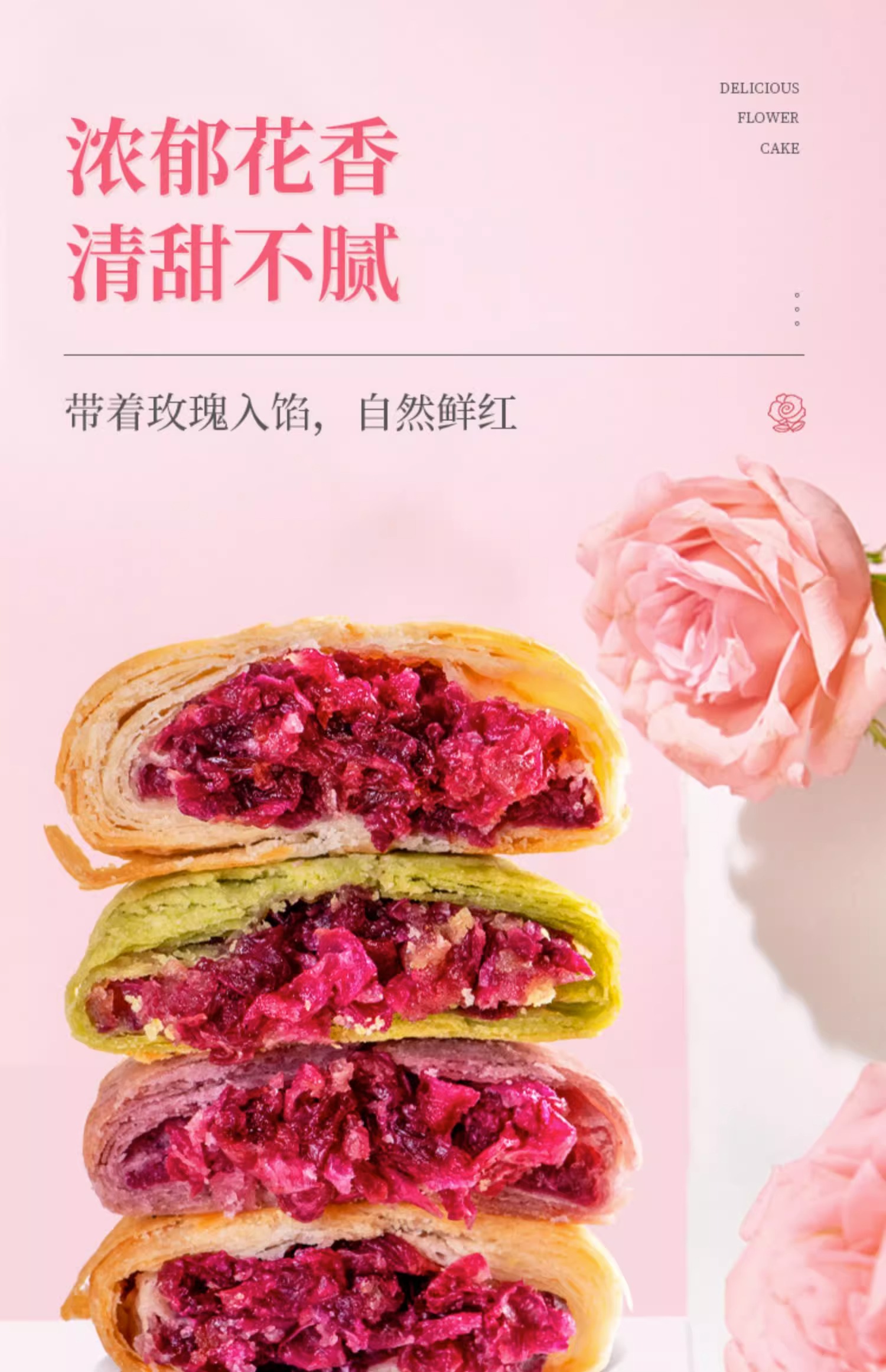玫瑰鮮花餅云南特產旗艦店零食小吃休閑食品面包整箱早餐月餅禮盒