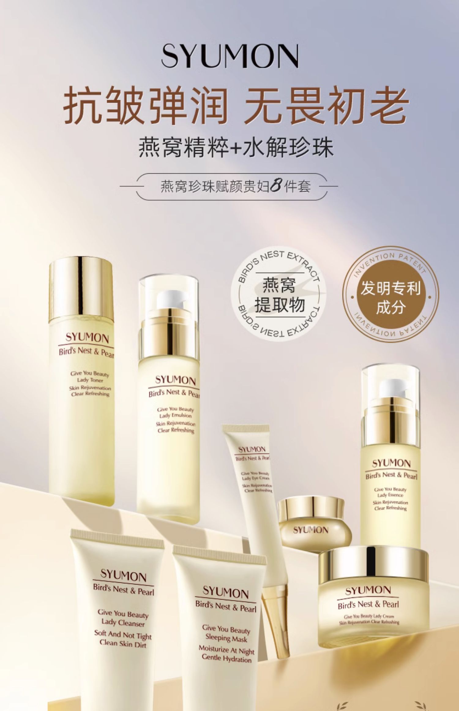 英國SYUMON燕窩珍珠抗皺八件套水乳套裝正品女全套護膚品禮盒裝5