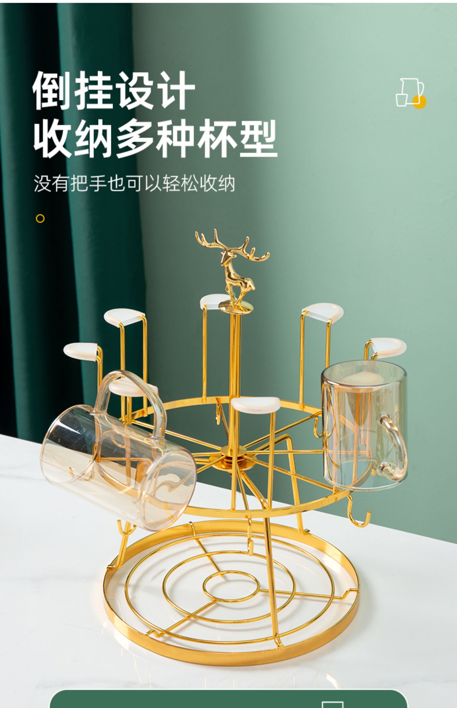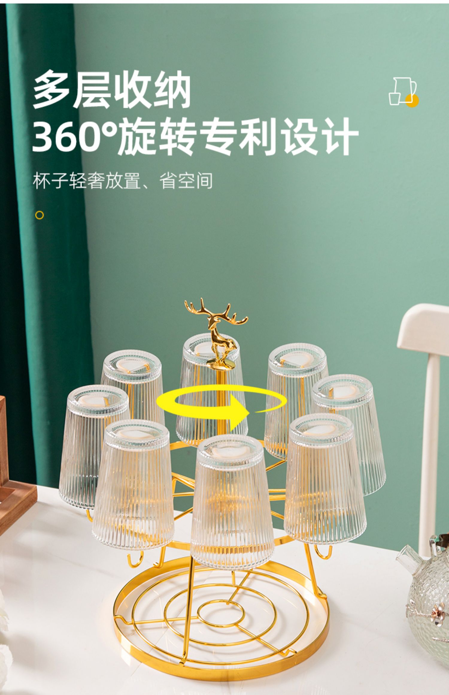 輕奢麋鹿旋轉杯架水杯家用整套客廳杯子瀝水收納架新款桌面置物架