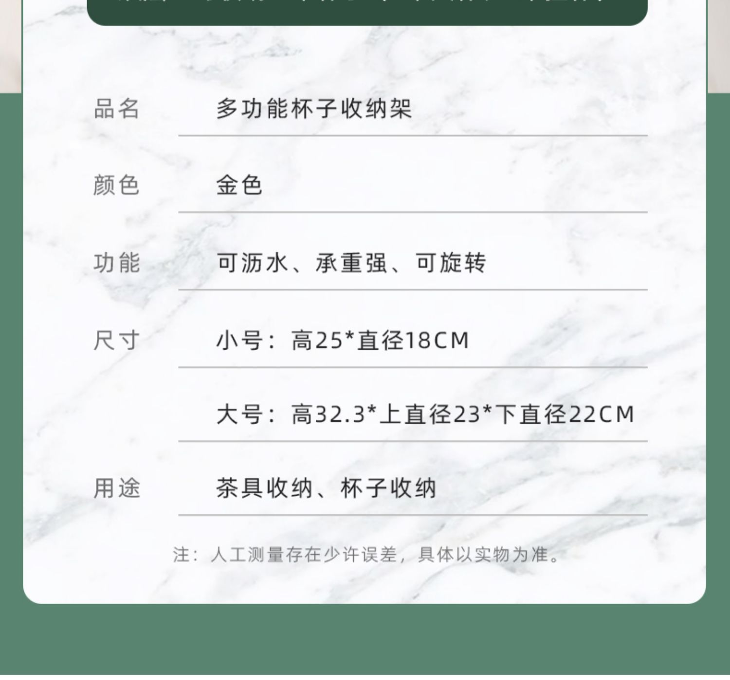 客廳旋轉瀝水杯架輕奢雙層奢華托盤水杯家用杯子架精致茶杯置物架