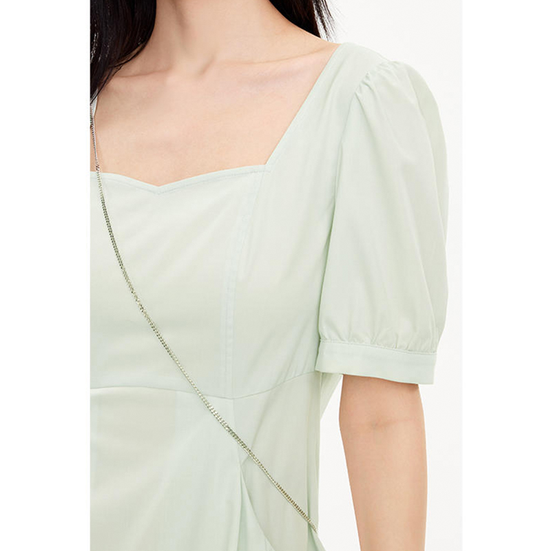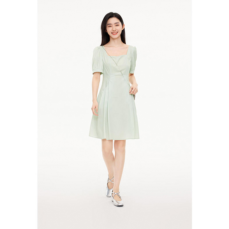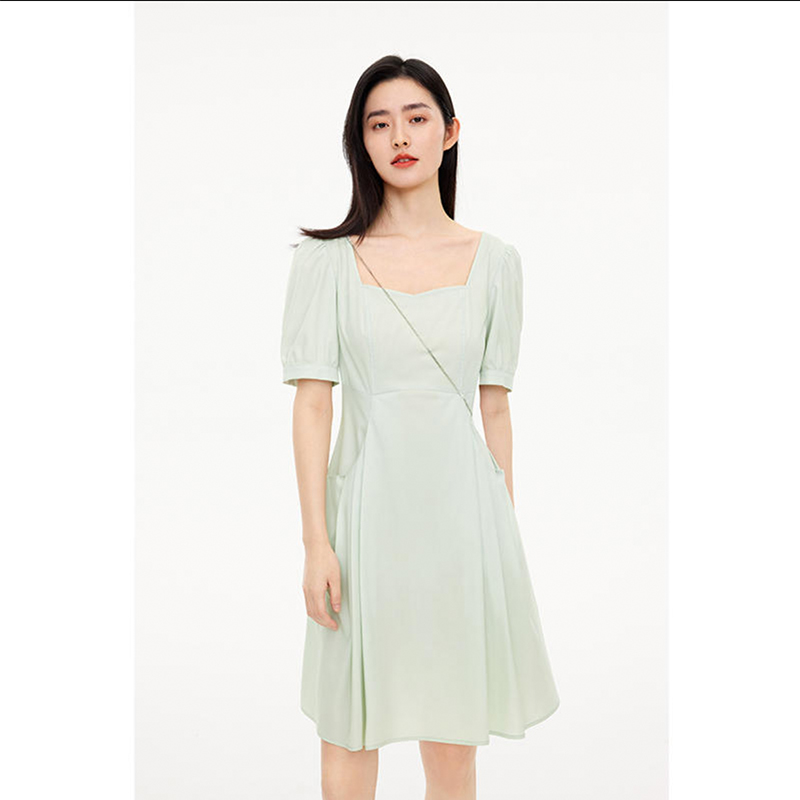 詩家2023秋新款減齡收腰氣質顯瘦通勤翠綠連衣裙3E7292731