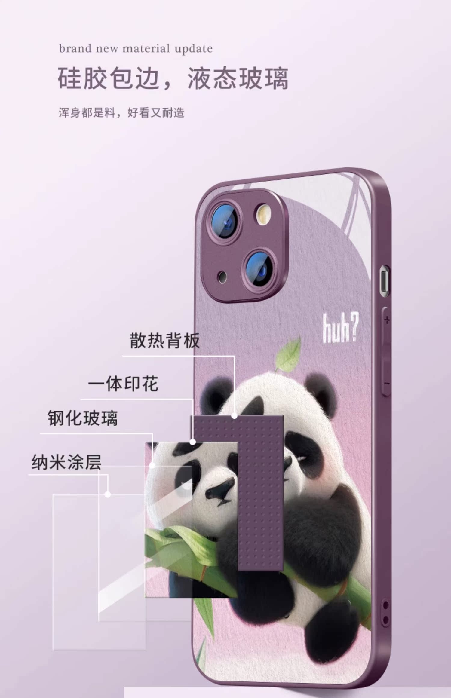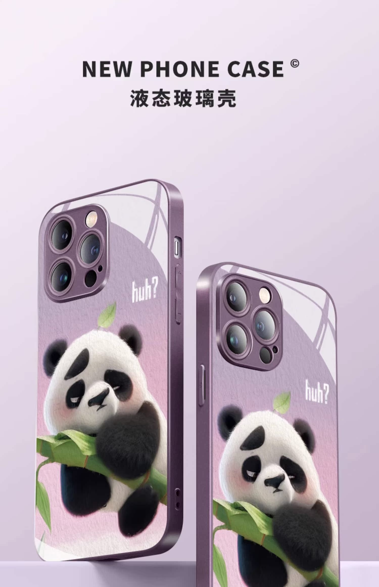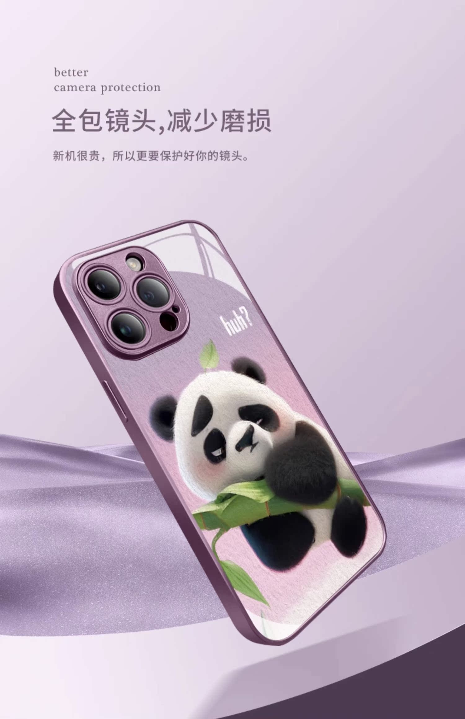 桔子貓適用于蘋果14promax創意熊貓手機殼14小眾玻璃殼14pro卡通可愛熊貓花花手機殼13promax紫色高級感11殼