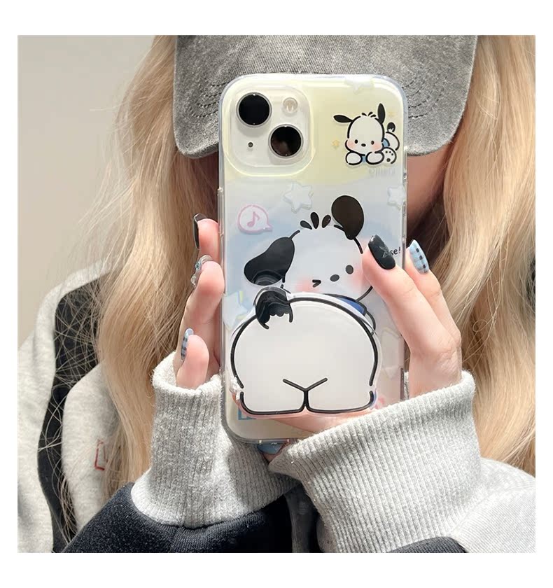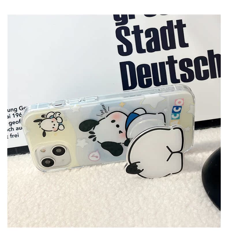 卡通可愛小狗帶支架適用蘋果14手機殼iPhone13ProMax新款12防摔13pro女款11硅膠14pro簡約小眾男網紅全包軟殼