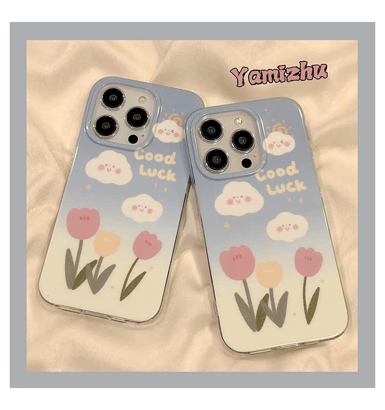 雙層藍天白云花朵適用蘋果14手機殼iPhone13ProMax新款14Pro女款12防摔11硅膠13Pro小眾創意網紅簡約全包軟殼