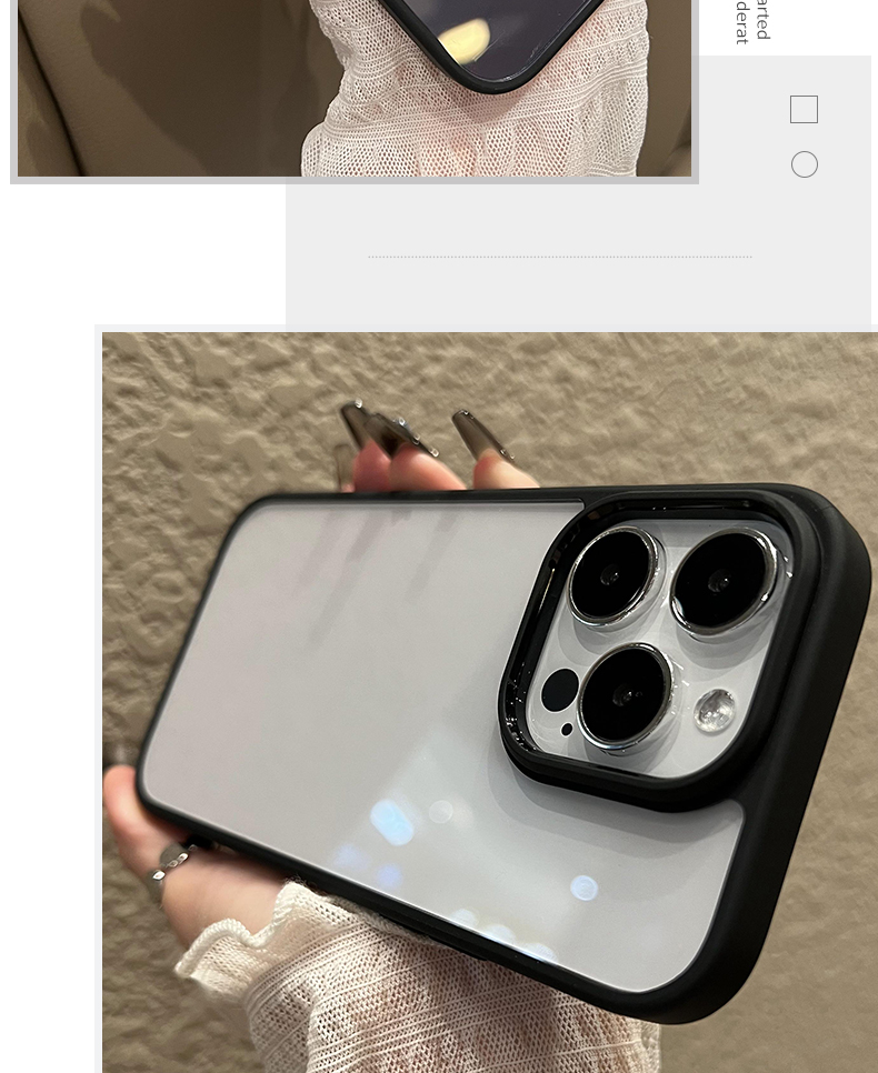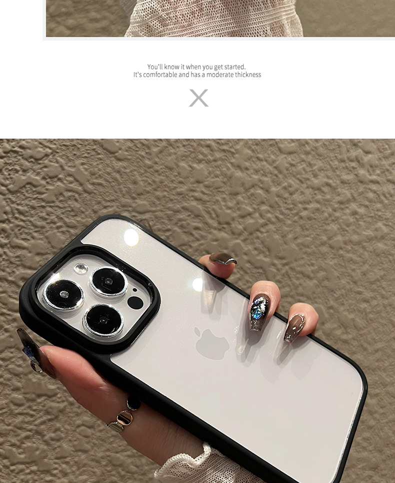 【厚薄適中,手感一流】簡約高級透明亞克力適用iphone15pro手機殼蘋果14proMax撞色13新款防摔12保護套男女