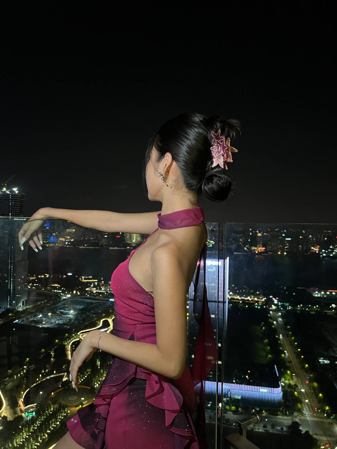 Nana Jacqueline 23ss 漸變緊身吊帶花邊露背連衣裙