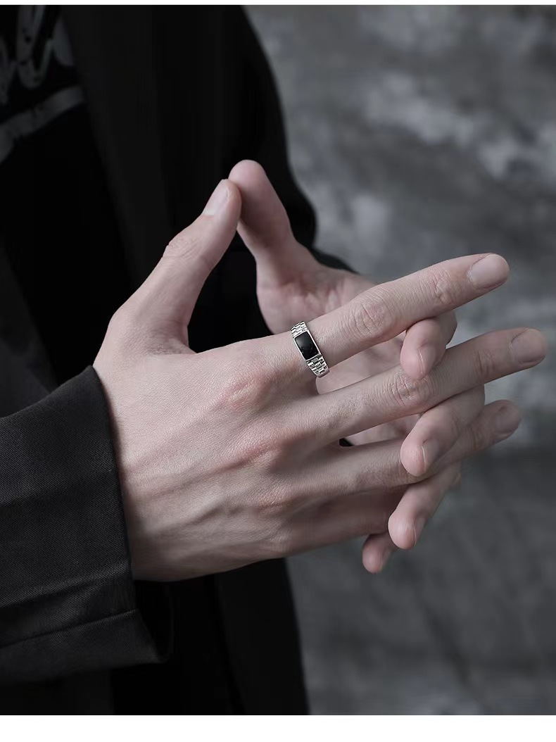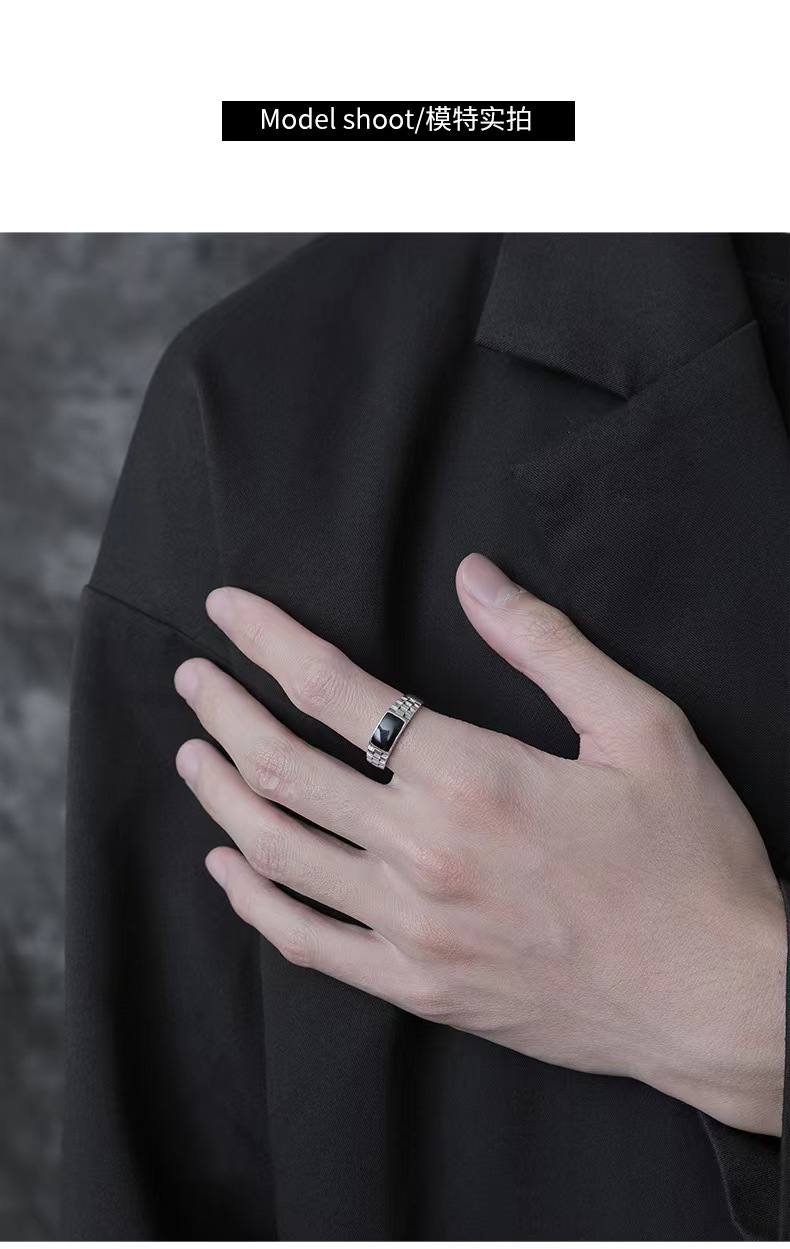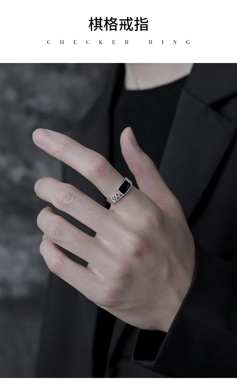 新款棋格滴油男潮戒指復古冷淡風高級感輕奢指環開口可調節食指戒