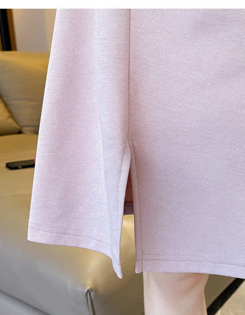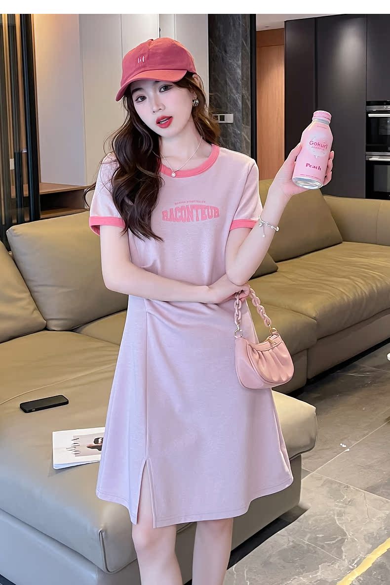 唐獅法式開叉連衣裙女夏新款粉色休閑學院風裙子夏季短袖T恤裙q3