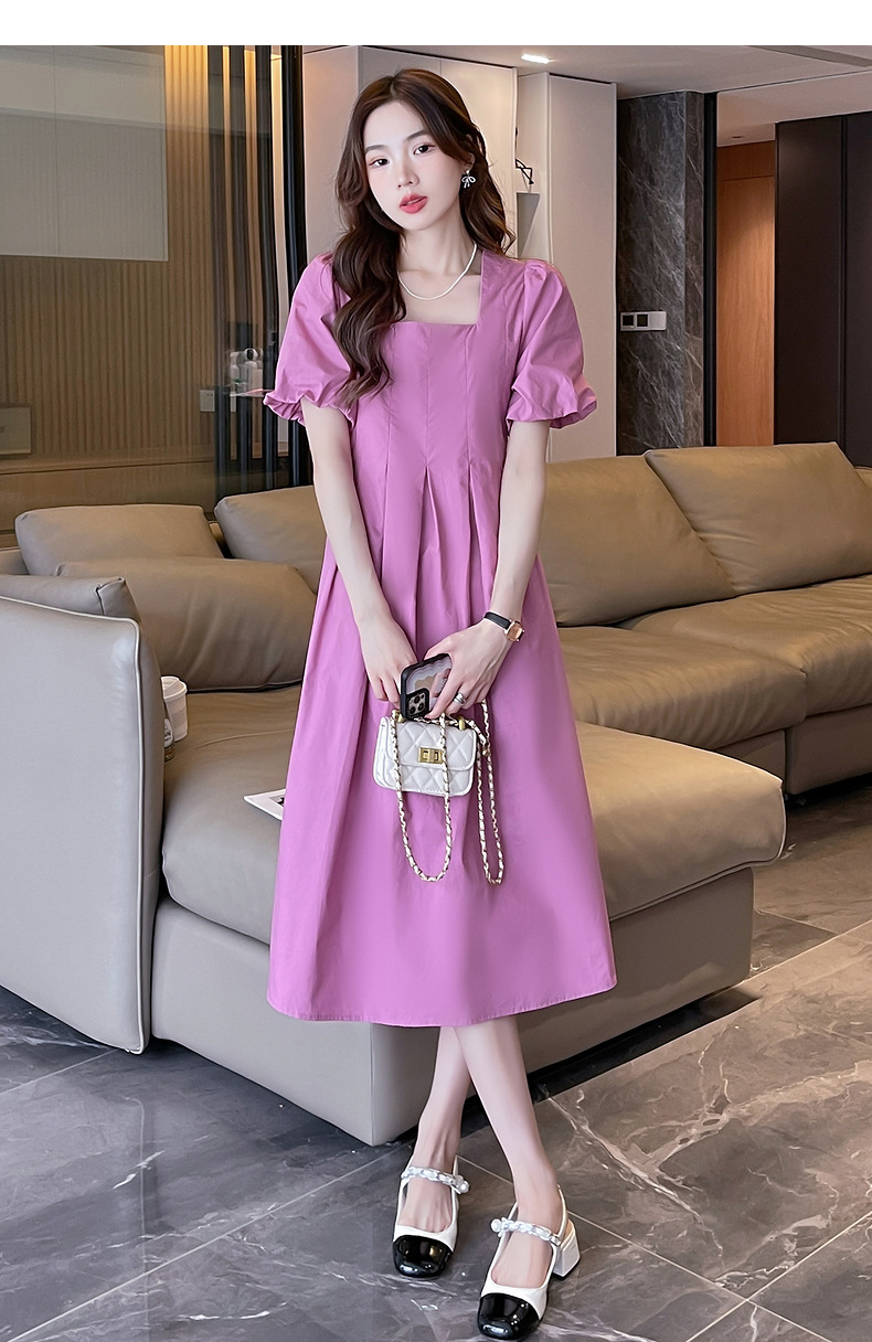 唐獅粉色泡泡袖連衣裙女夏新款長裙小個子公主裙甜美裙子女夏季q3